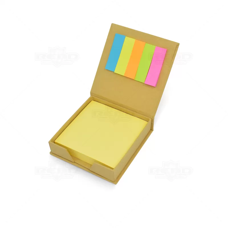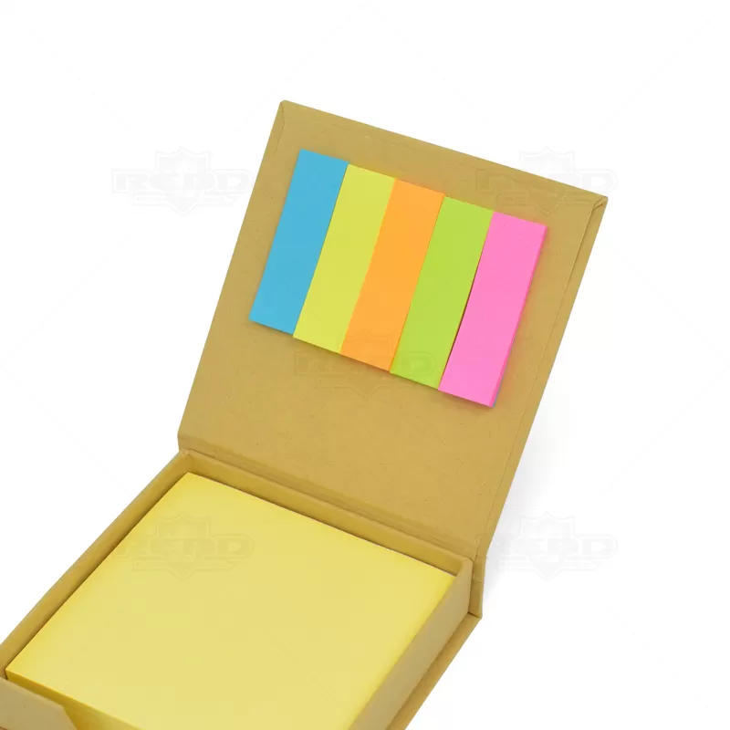 Bloco de anotações personalizado com 1 Bloco de anotações com aproximadamente 150 folhas * 1 Conjunto de Post-it com seis unidades coloridas. Ideal para brindes promocionais e eventos corporativos.