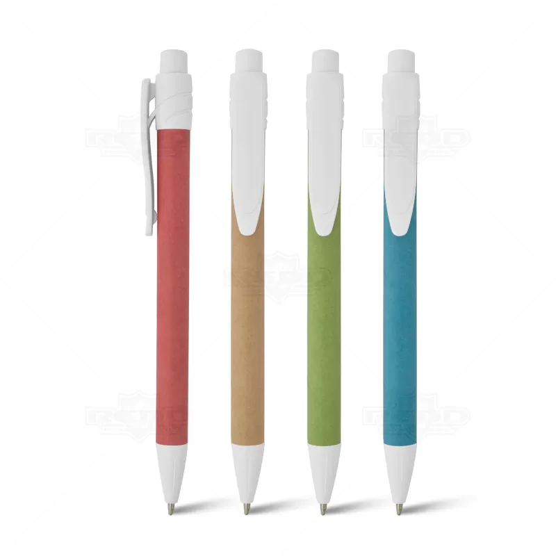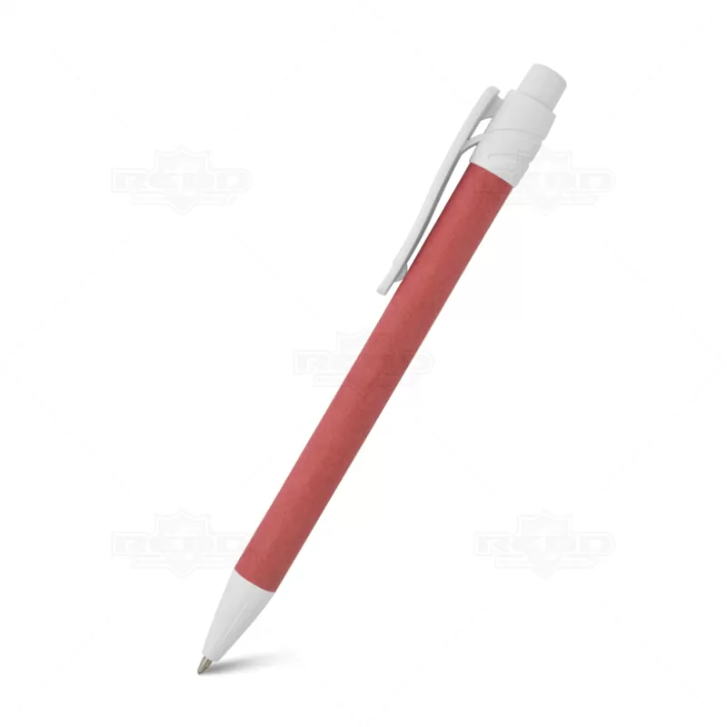 Caneta personalizada produzida em papel colorido reciclável ecológico, possui esferográfica com carga azul acionada por click e clip plástico. Ideal para divulgar sua empresa em eventos corporativos, brindes personalizados e campanhas promocionais.