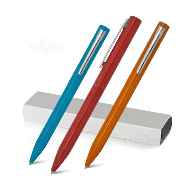 Caneta de metal personalizada com mecanismo twist possui clip brilhante, corpo laqueado com revestimento brilhante, recarga de metal "tipo-Cross" e tinta Dokumental azul. Acompanha estojo personalizado. Ideal para divulgar sua empresa em eventos corporativos, brindes personalizados e campanhas promocionais.