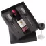 Kit vinho com embalagem personalizada para brinde promocional. Acompanha 1 garrafa de vinho de 750ml e 2 taças de 350ml acondicionados em embalagem confeccionada em caixa cartonada com papel Paraná, revestida em Off-Set preto 120g/m²