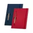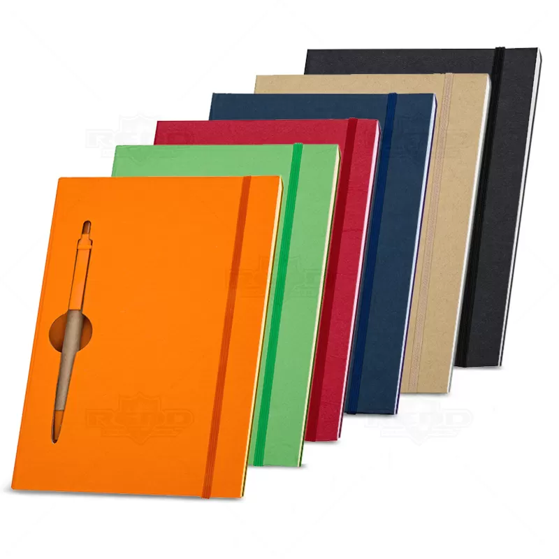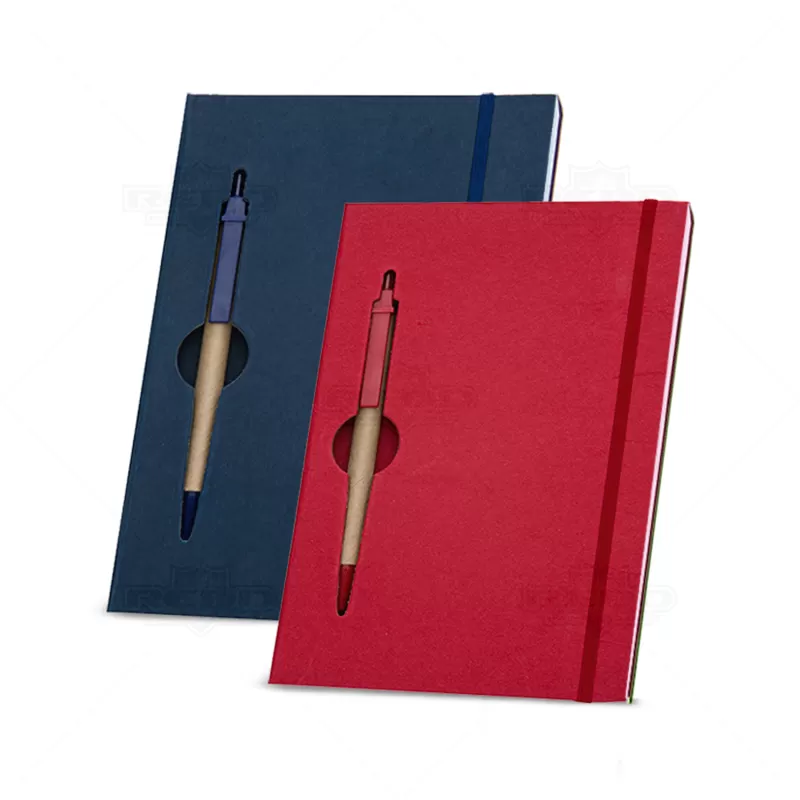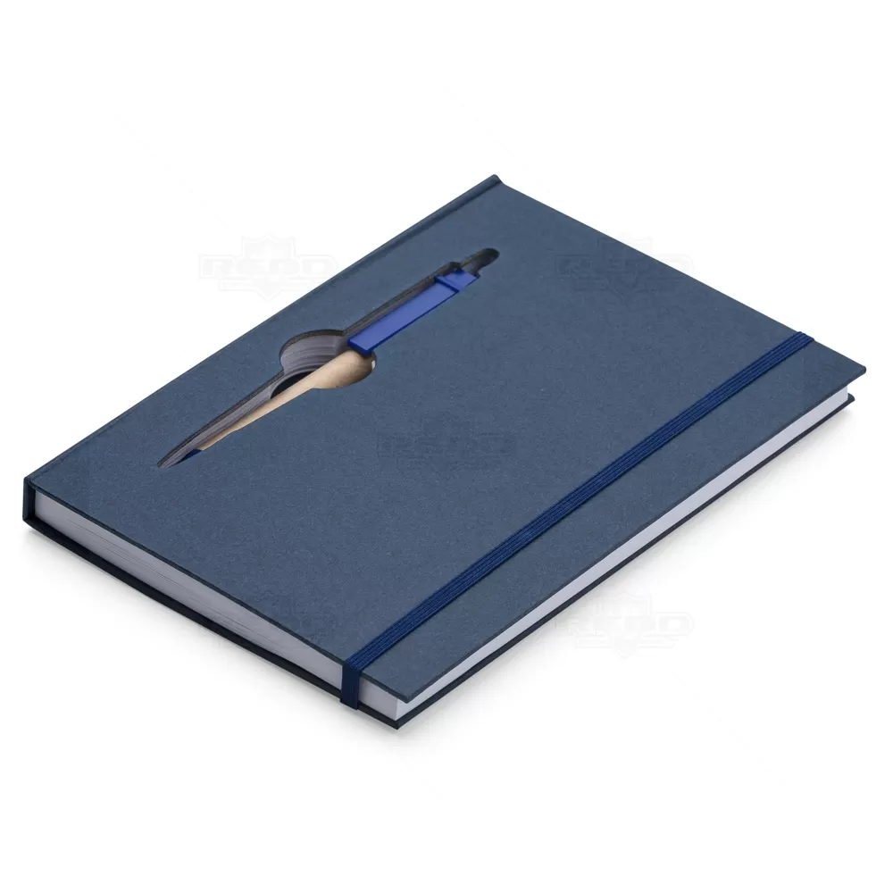 Bloco de anotações personalizado, possui capa dura, folhas pautadas e elástico para fechamento. Acompanha caneta esferográfica com carga azul. Ideal para divulgação da sua empresa utilizando seu logotipo em campanhas publicitárias, eventos corporativos e brindes promocionais.