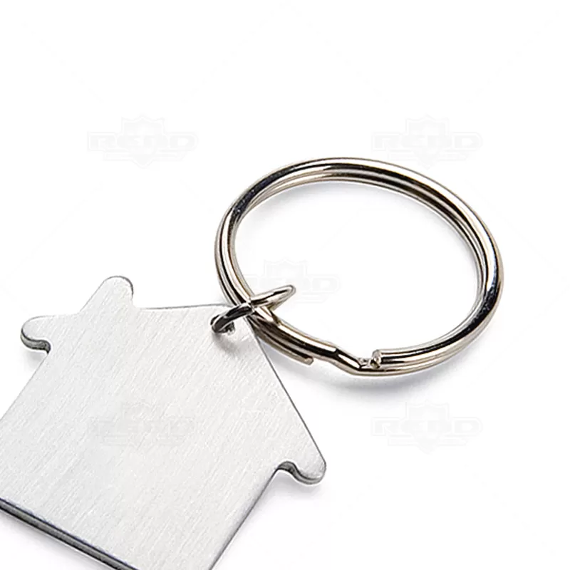 Chaveiro de metal personalizado em formato de casa, possui argola de metal e acabamento fosco. Ideal para divulgar sua empresa em eventos corporativos, brindes personalizados e campanhas promocionais.