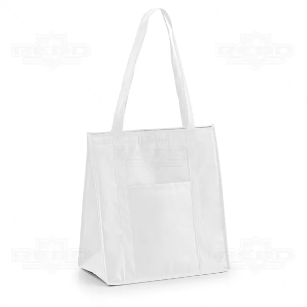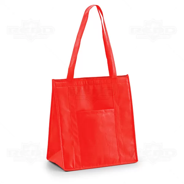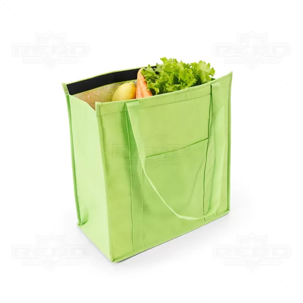 Sacola térmica personalizada em Non-woven 80g/m² com revestimento interno de manta térmica. Possui alças de 25cm, fecho com velcro e capacidade para até 10 litros. Com um visual moderno e elegante, permite transportar alimentos frescos como frutas e verduras. Com gravação personalizada é ideal para brindes personalizados, distribuição em campanhas promocionais, feiras e eventos corporativos.