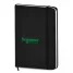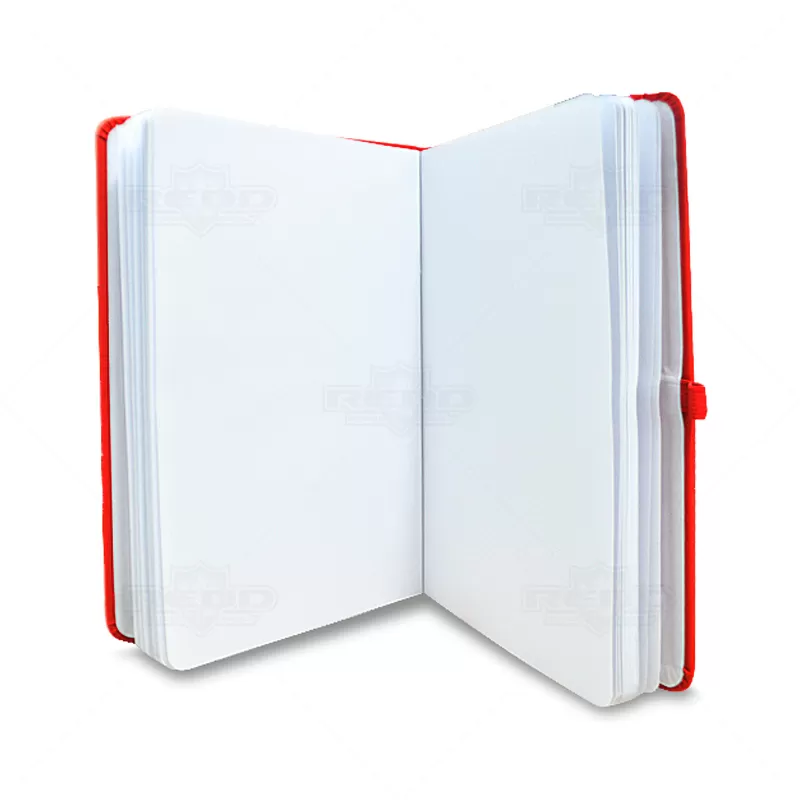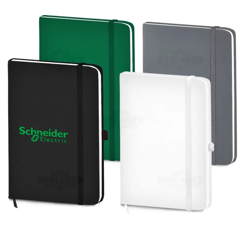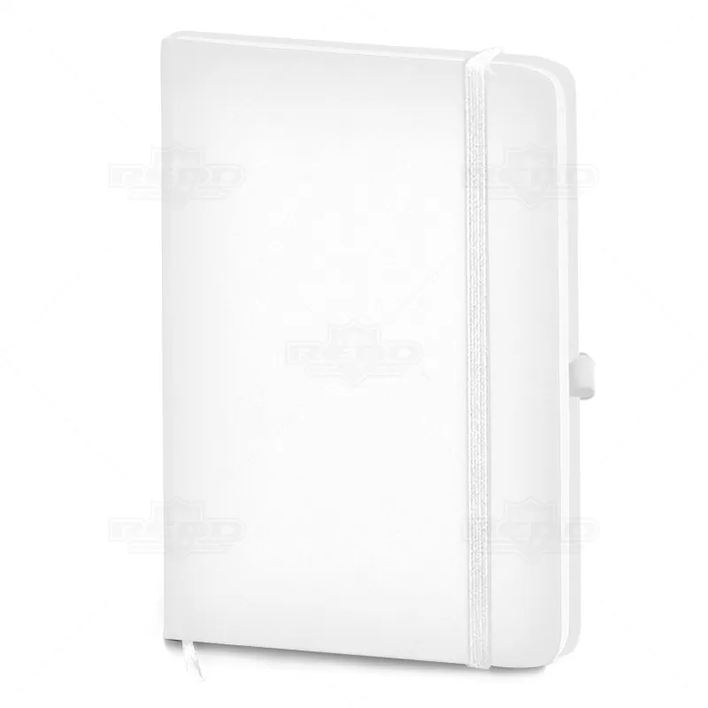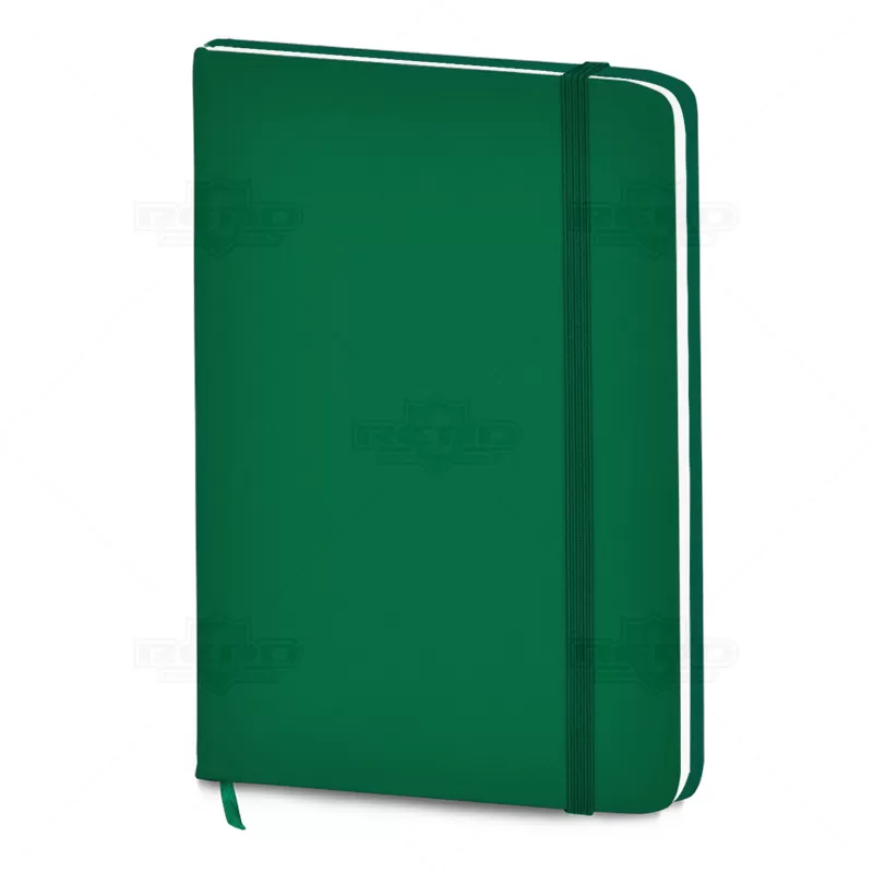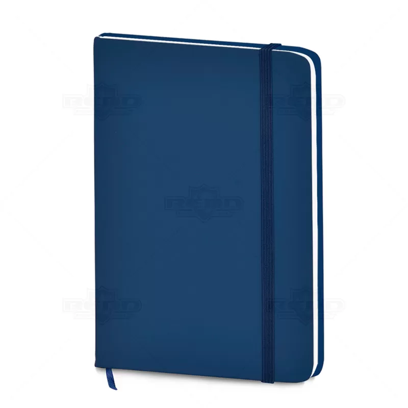 Bloco de anotações personalizado, confeccionado em material sintético soft touch, possui capa dura, elástico para porta caneta (não inclusa) e aproximadamente 80 folhas não pautadas. As cores apresentadas podem sofrer pequenas variações de tonalidade.