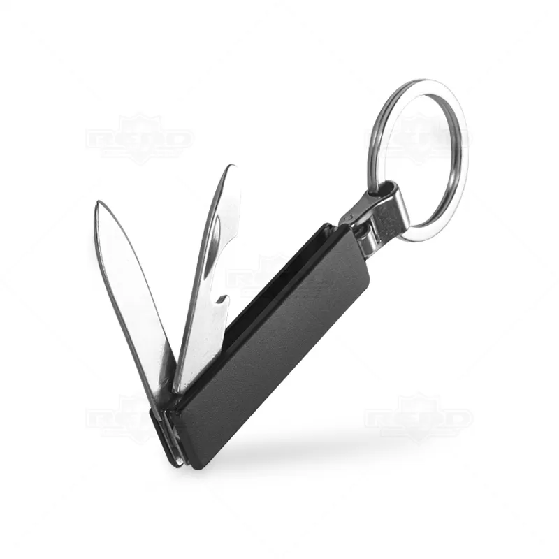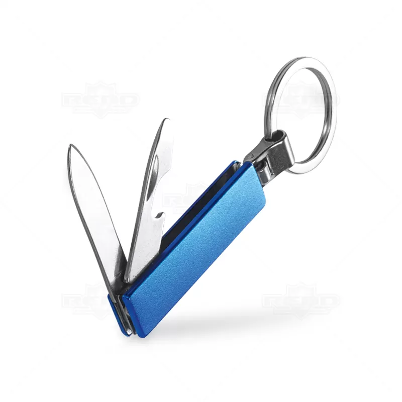 Chaveiro canivete de metal personalizado, possui argola para chave, 1 canivete e abridor de garrafas. Ideal para divulgar sua empresa em eventos corporativos, brindes personalizados e campanhas promocionais.