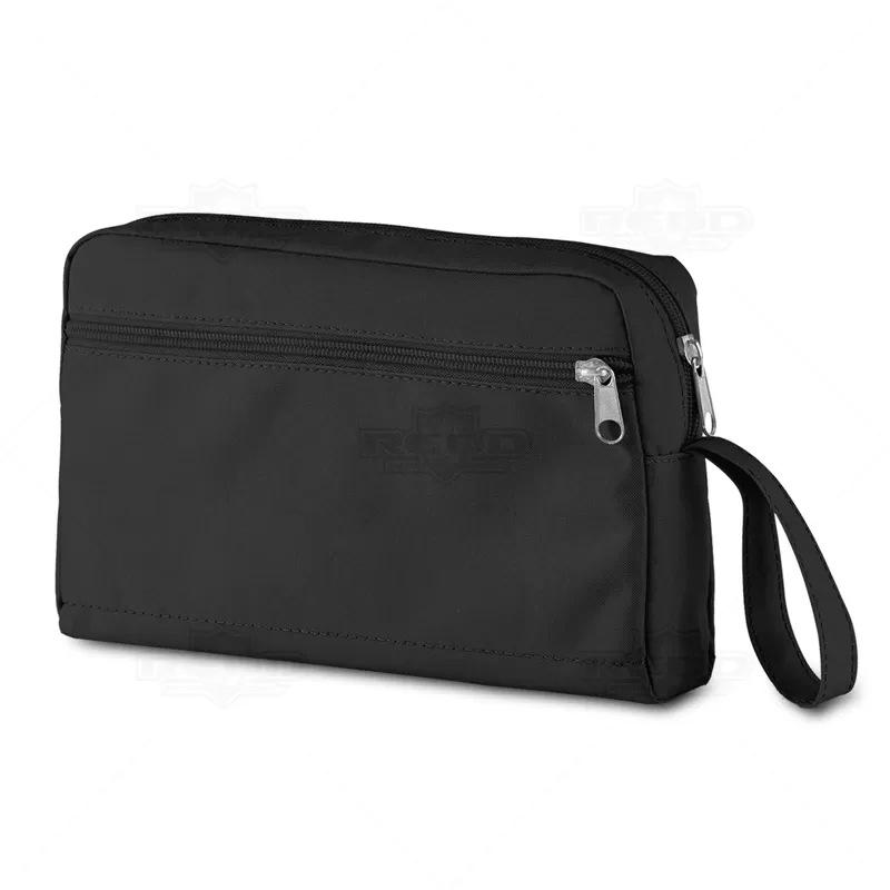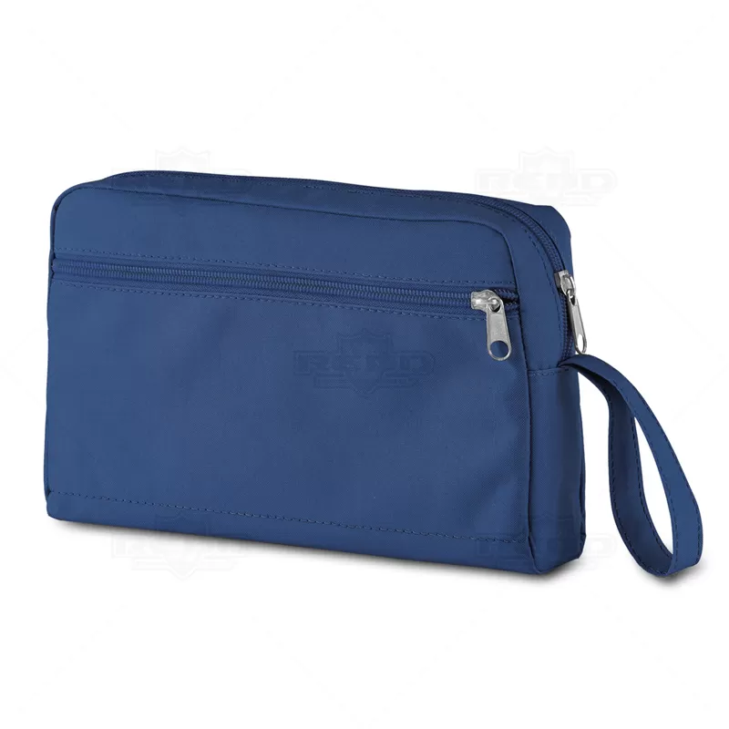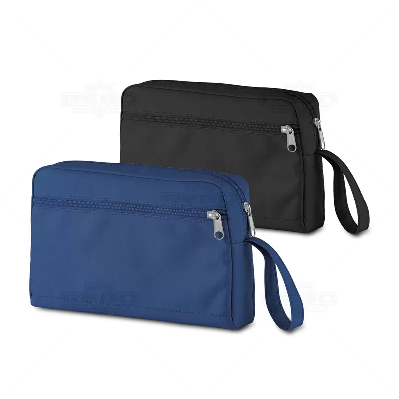 Necessaire personalizada produzida em nylon 300D com compartimento interno e bolso externo em zíper. Possui alça de mão para melhor transportá-la. ideal para guardar cosméticos e itens pessoais.