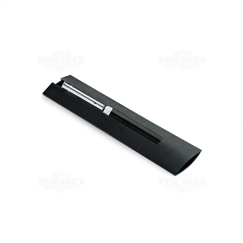 Embalagem para caneta produzido em papel cartão black, possui compartimento para 1 caneta esferográfica. Ideal para divulgar sua empresa em eventos corporativos, brindes personalizados e campanhas promocionais. Caneta não acompanha o produto.