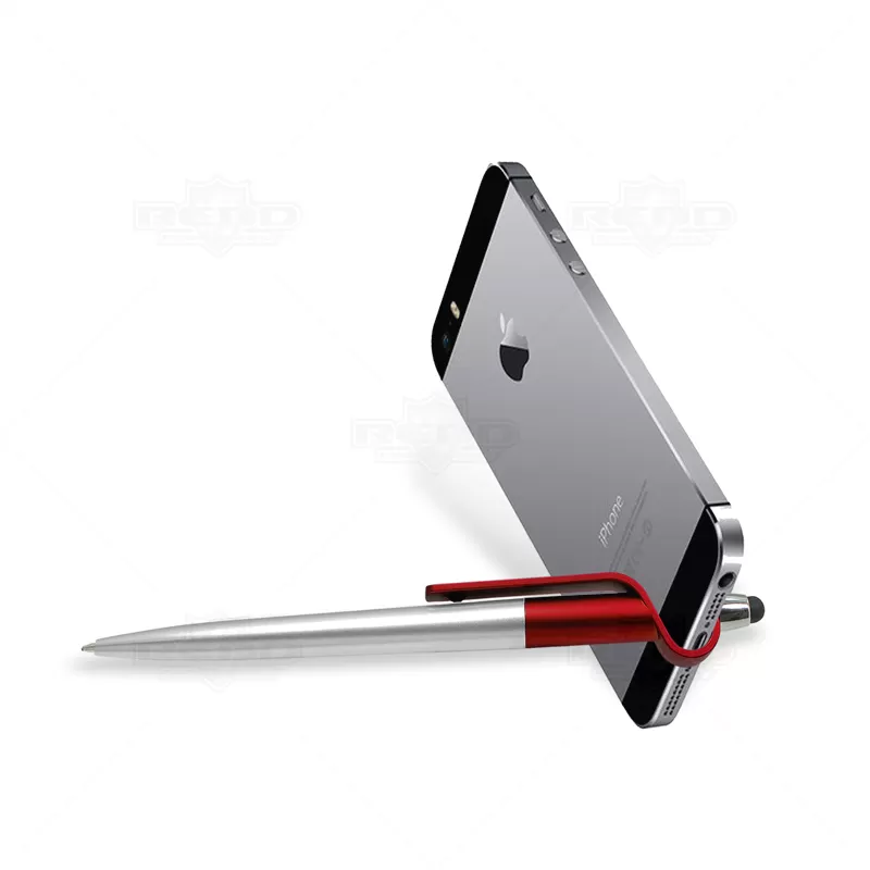 Caneta Plástica com Ponteira Touch e Porta Smartphone Personalizado. Possui acabamento personalizado além de contar com uma ponteira touch para uso exclusivo em seu tablet e smartphone. Escrita esferográfica azul com acionamento giratório, macia e confortável com clip personalizado que permite suporte para smartphone. Fácil e prática de usar é ideal para campanhas publicitárias, eventos corporativos e brindes promocionais. * Smartphone não incluso.