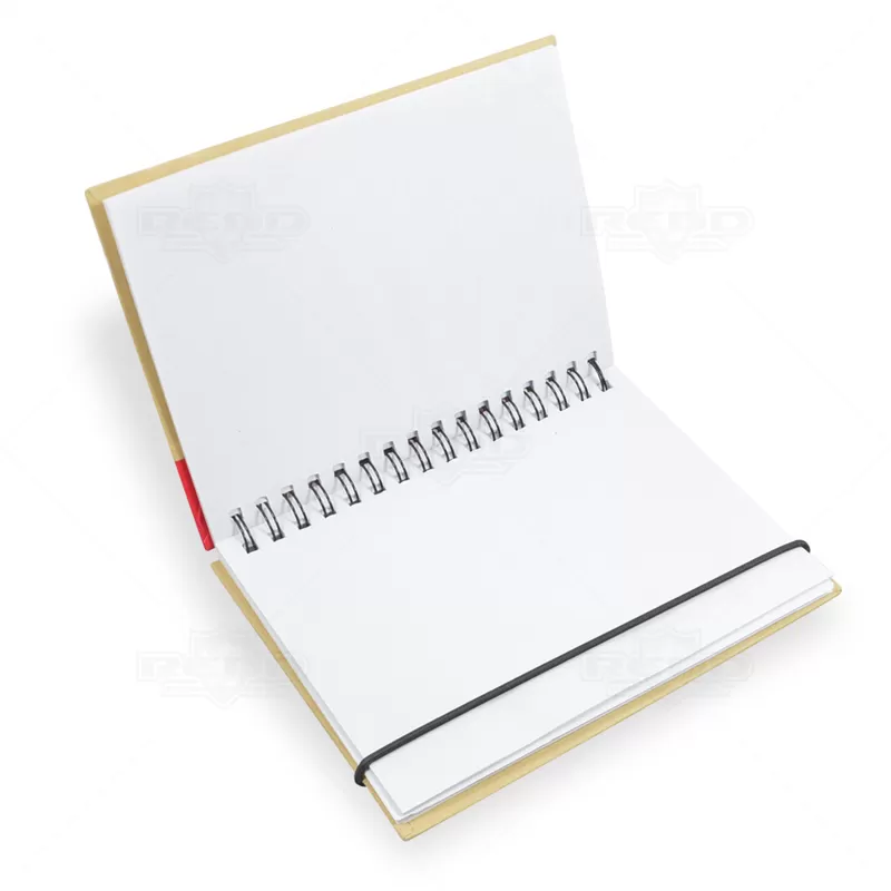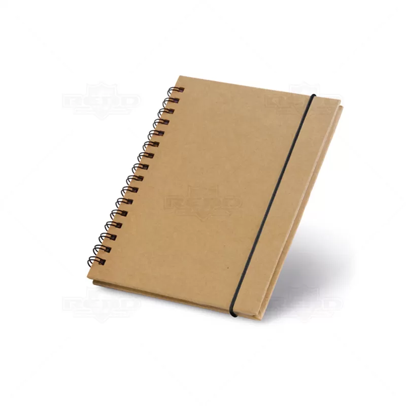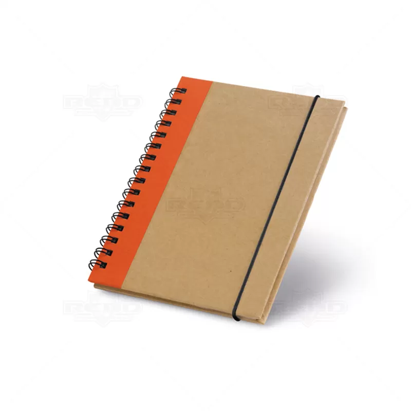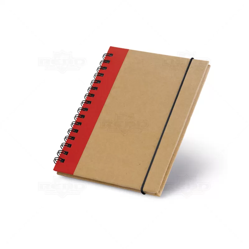 Bloco de Anotações Personalizado, faixa lateral colorida em tecido, encadernação em wire-o, elástico para fechamento e aproximadamente 60 folhas não pautadas de papel reciclado. Ideal para fazer suas anotações e rascunhos do dia a dia. Ótima opção para brindes corporativos e eventos promocionais.