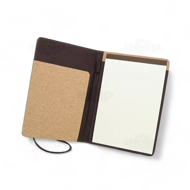 Com visual sofisticado e proposta sustentável, esta pasta é produzida em cortiça, oferecendo textura diferenciada e excelente durabilidade. Seu interior conta com bloco de 20 folhas não pautadas na cor marfim, ideais para anotações livres, croquis ou registros profissionais. O fechamento em elástico garante praticidade no uso diário e segurança no transporte. Internamente, dispõe de compartimentos funcionais para cartões e documentos, além de suporte para caneta (não inclusa), otimizando a organização. Acompanha embalagem em non-woven, agregando valor à apresentação do item. Leve, funcional e ecologicamente responsável, este portfólio é ideal para profissionais que valorizam estilo e consciência ambiental em ambientes corporativos, eventos sustentáveis ou reuniões executivas. É também uma excelente opção de brinde personalizado para empresas que desejam transmitir uma imagem moderna e comprometida com práticas sustentáveis, fortalecendo a marca em ações promocionais, feiras e eventos institucionais.