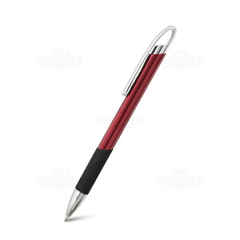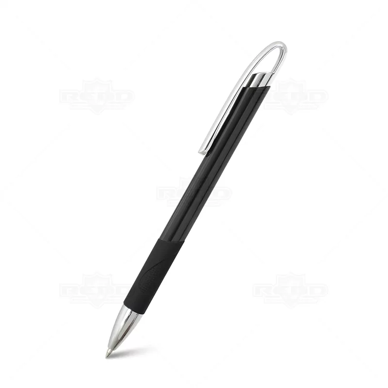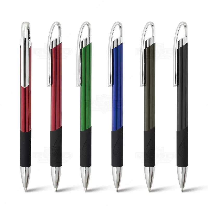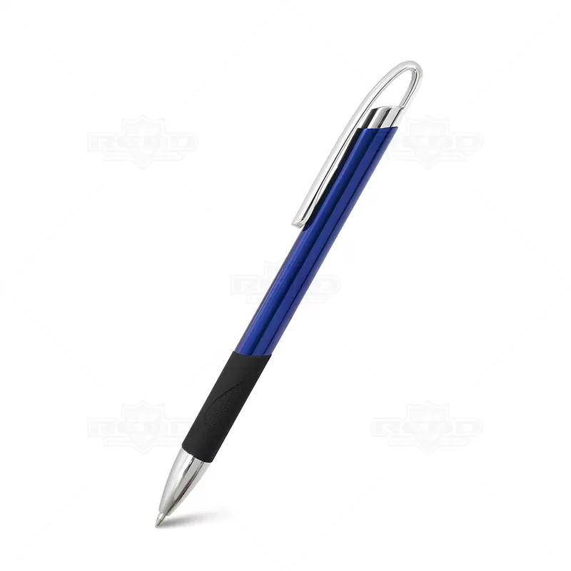 Caneta de metal personalizada, possui esferográfica na cor azul, detalhes no corpo da caneta emborrachado que assegura a escrita deixando mais firme e confortável. Seu acionamento é através do clip da caneta. Ótima opção para eventos corporativos, campanhas publicitárias e brindes promocionais.