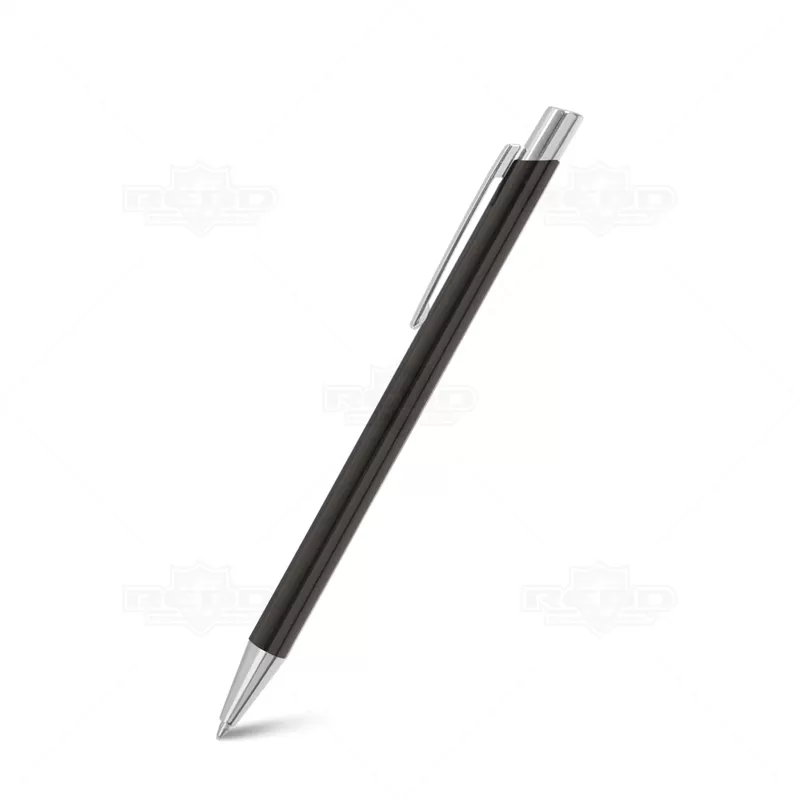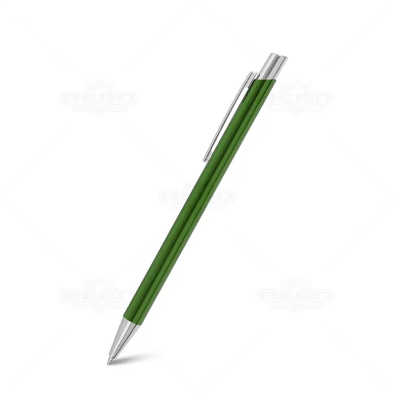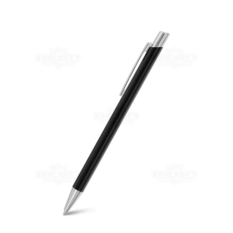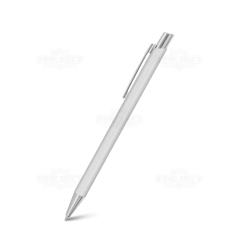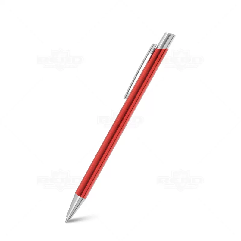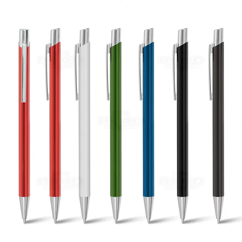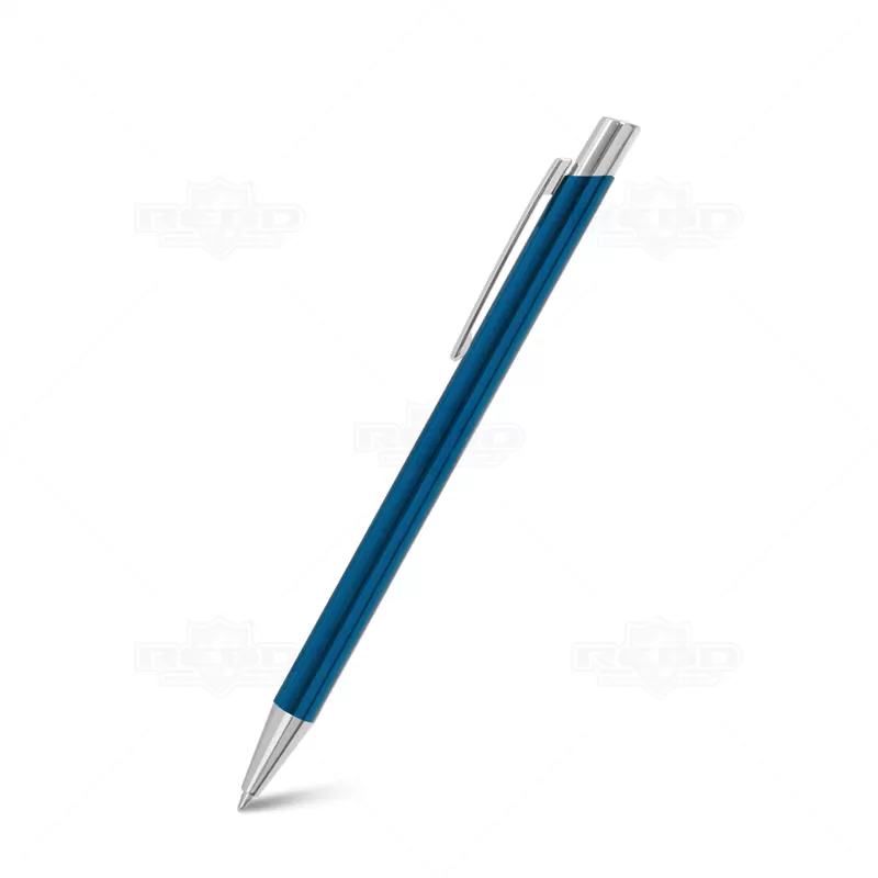 Caneta de metal personalizada com esferográfica na cor azul e clip de metal. Possui um design elegante e inovador ideal para eventos corporativos, campanhas publicitárias e brindes promocionais.