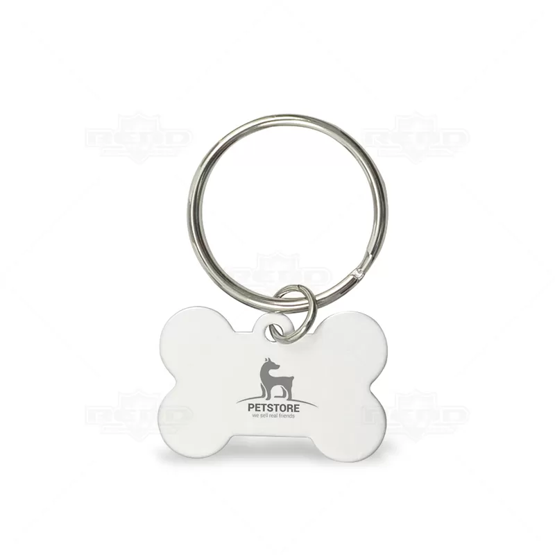 Produzido em alumínio com argola de metal no formato de osso pet, serve também como pingente de identificação de seu animal de estimação. Ideal para divulgar sua empresa em eventos corporativos, brindes personalizados e campanhas promocionais.