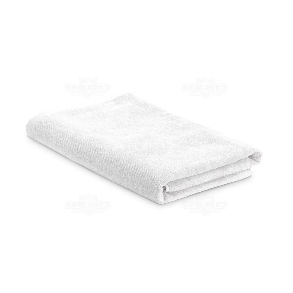 Toalha de praia personalizada em veludo de algodão 320 g/m², oferecendo conforto e durabilidade para aproveitar dias de lazer com conforto. Com uma textura macia, é perfeita para relaxar à beira-mar, na piscina ou em resorts, proporcionando uma experiência agradável. A toalha é fornecida de uma prática sacola em non-woven (80 g/m²), que facilita o transporte e armazenamento, agregando conveniência ao conjunto. Ideal como brinde promocional para campanhas de marketing ou eventos corporativos, reforça a visibilidade da marca em momentos de descontração e bem-estar. A personalização exclusiva valoriza a peça, tornando-a uma lembrança para clientes e colaboradores. Sacola: 330 x 415 x 100 mm.