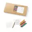 Kit para pintar personalizado com embalagem em Kraft, 8 gizes de cera para colorir e 8 cartões para pintar. Pode ser utilizado tanto na escola quanto em demais trabalhos diários. Ideal para brindes promocionais e eventos corporativos.