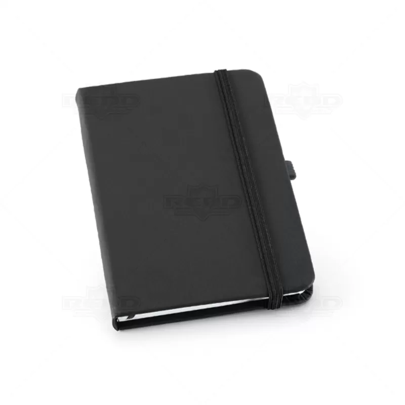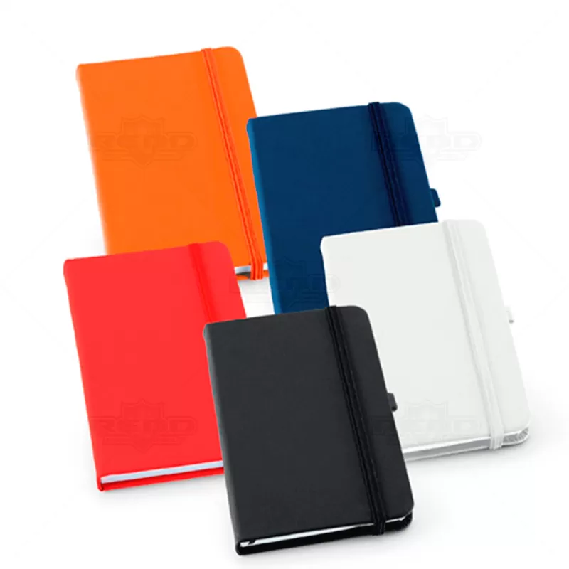 Bloco de anotações personalizado, produzido em material sintético com capa dura, divisão de página e folhas brancas não pautadas. Ideal para anotações e rascunhos do dia dia. Ótima opção para brindes promocionais e eventos corporativos.