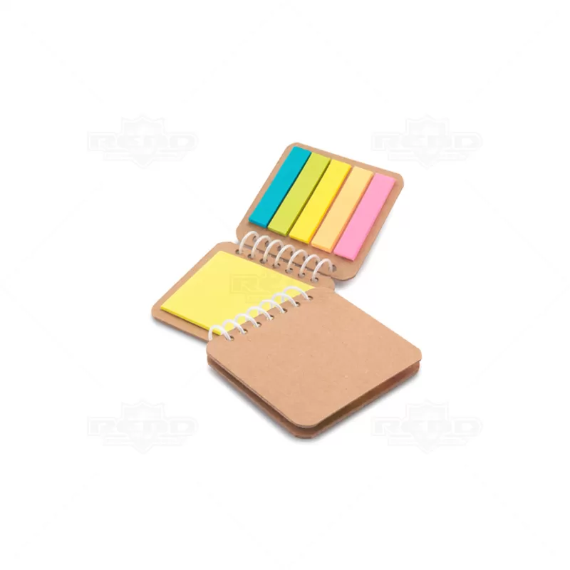 Bloco de anotações personalizado, produzido em papel kraft, espiral lateral, bloco para recados e 6 conjuntos de autocolantes coloridos com aproximadamente 25 folhas cada. Ideal para brindes promocionais e eventos corporativos.