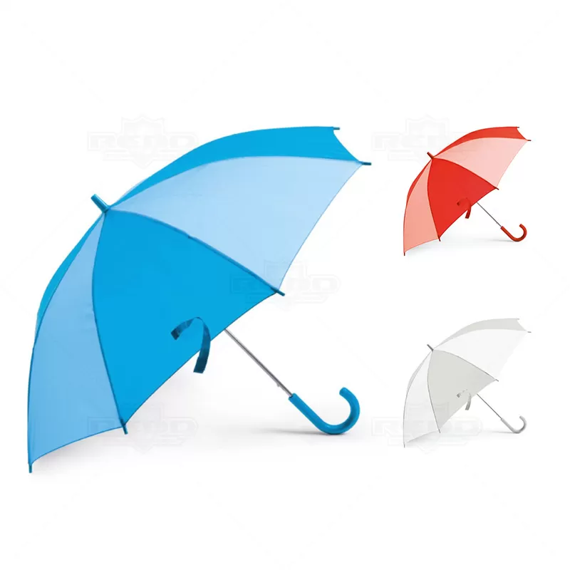 Guarda chuva para criança personalizado com cabo curvado em PP , abertura total de Ø870mm e hastes resistentes. ideal para brindes promocionais e eventos corporativos.