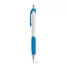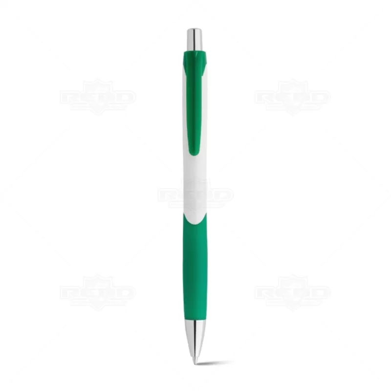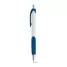 Caneta plástica produzida em ABS com detalhe emborrachado que assegura uma escrita macia e confortável, e esferográfica na cor azul que é exibida e recolhida através do mecanismo do click. Ideal para eventos corporativos e brindes promocionais.