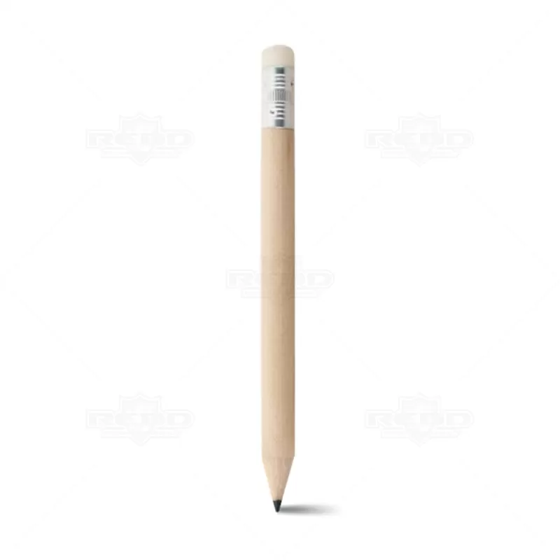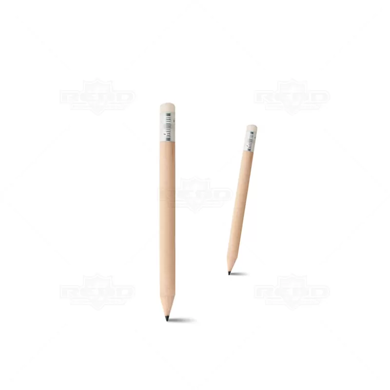 Mini lápis personalizado com borracha branca e detalhe de metal. Ideal para brindes promocionais e eventos corporativos. Imagem ilustrativa.