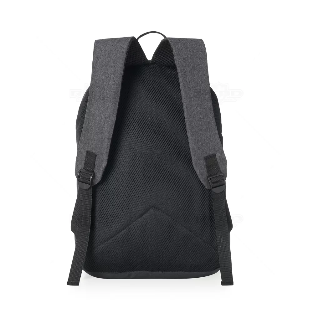 Mochila personalizada em nylon poliester para notebook 14.5''Pol, com detalhes em cinza. Possui compartimento grande com bolso interno para notebook e bolso frontal. Zíperes prata, alça superior de nylon, alças para costa ajustáveis, parte traseira revestida de espuma para maior conforto. Ideal para brindes promocionais e eventos corporativos.* Itens decorativos não acompanham o produto.