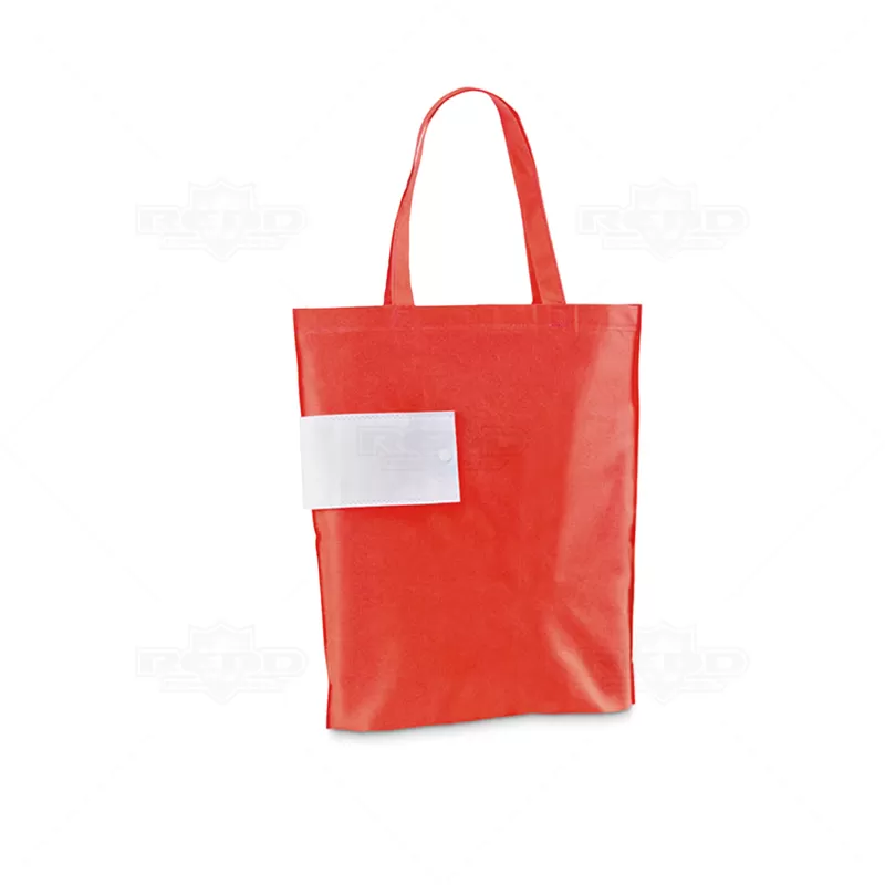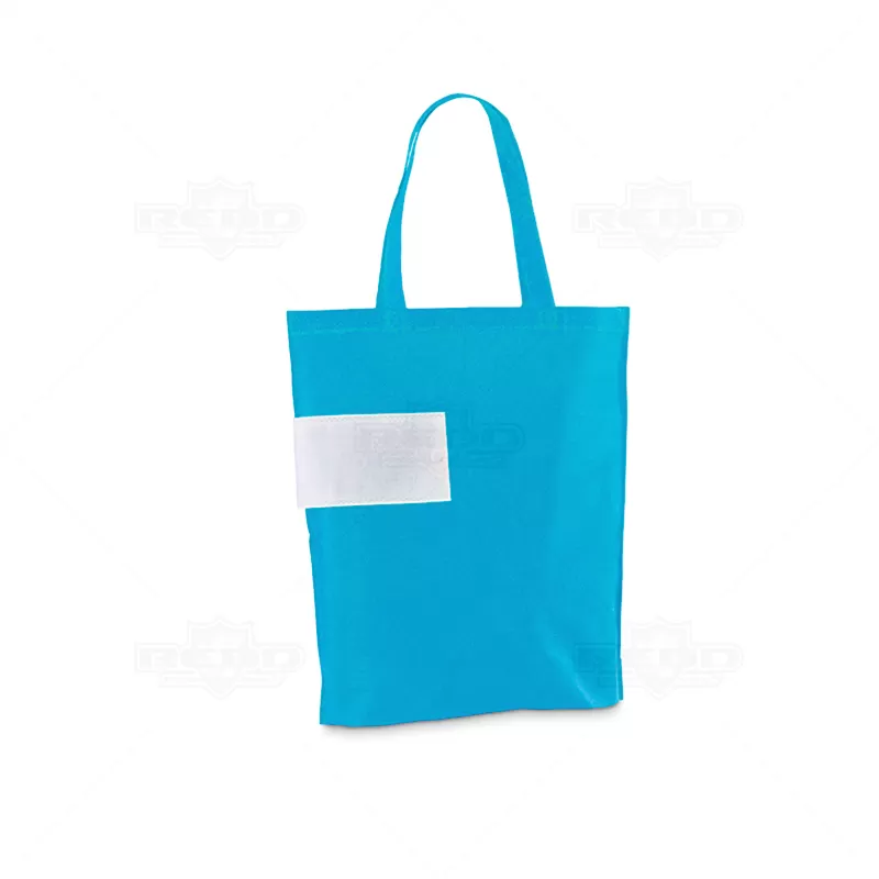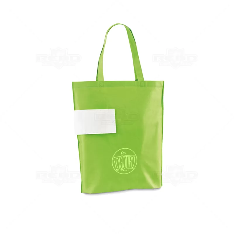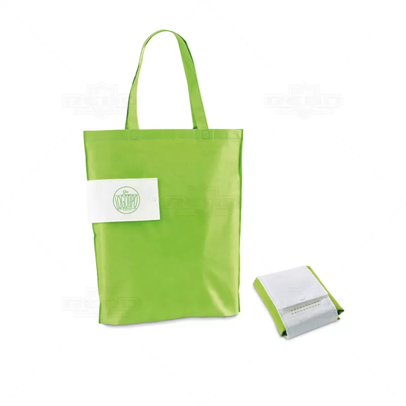 Sacola dobrável personalizada com acabamento termo selado, produzida em Non-woven 80 g/m², Possui alça resistente de 50cm e lapela com botão para fechamento da sacola. Ideal para brindes promocionais e eventos corporativos. Tamanho da sacola dobrada: 110 x 132 mm