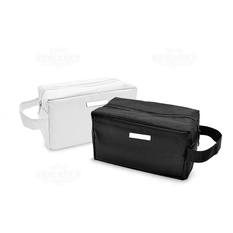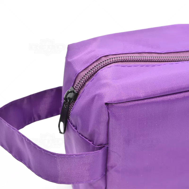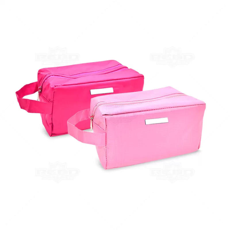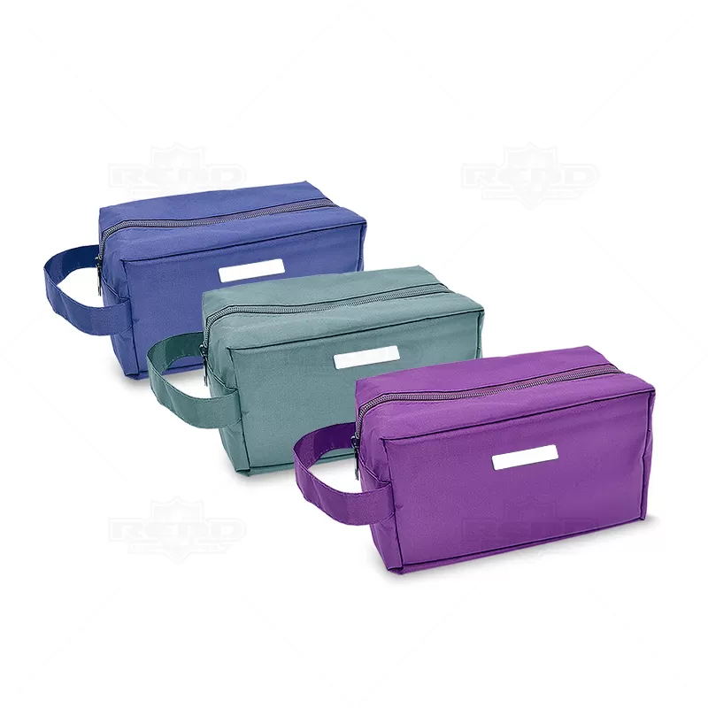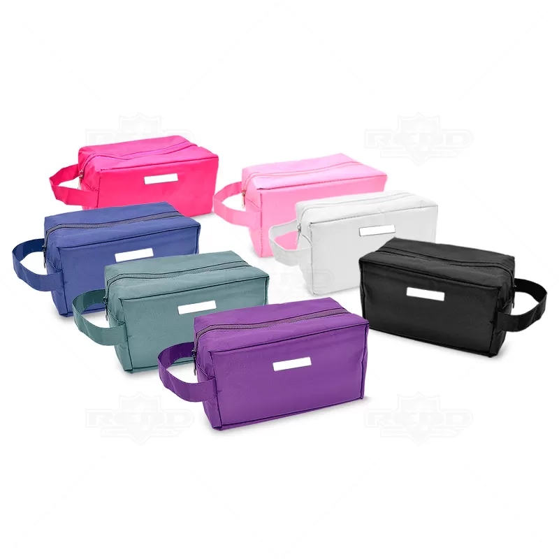 Necessaire personalizada com zíper de fechamento, produzida em nylon com acabamento diferenciado, possui espaço interno ideal para guardar itens básicos do dia a dia, excelente e útil em suas viagens, academia e trabalho, forro interno na cor marrom e alça de mão. Ótima opção para brindes promocionais e eventos corporativos.