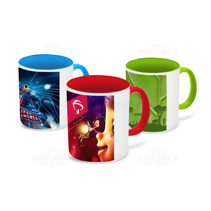 Caneca de porcelana personalizada com alta durabilidade de impressão e capacidade para 325ml. Possui alça e interior colorido com acabamento em alto brilho. Use e abuse de sua criatividade. Ideal para brindes promocionais e eventos corporativos.