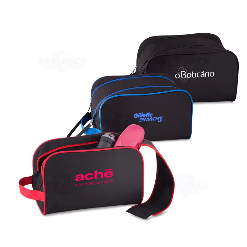 Necessaire personalizada produzida em nylon rip stop e poliéster 600 com alça de mão em nylon confortável, 2 cursores diferenciados, amplo espaço interno para guardar maquiagem, cremes, produtos para higiene diária, pentes, remédios e objetos em geral do dia dia. Ideal para brindes promocionais e eventos corporativos.*Objetos decorativos não inclusos ao produto.
