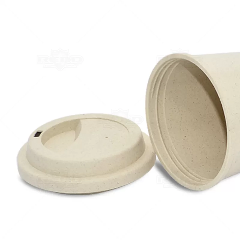 Copo personalizado personalizado em fibra de bambu e PP com tampa, capacidade de até 450 ml de líquido quente ou frio. O brinde personalizado ideal para sua campanha ou evento com apelo ecológico e sustentável.