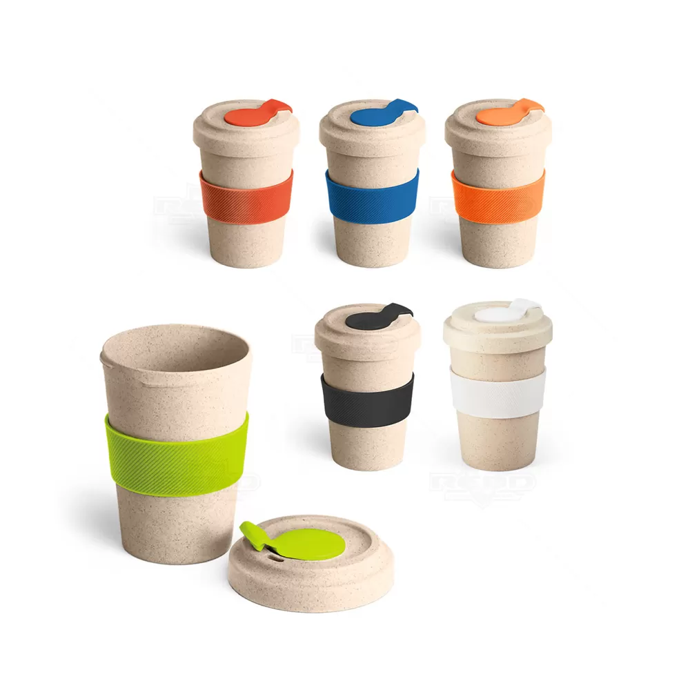 Copo com tampa 500 ml produzido em fibra de bambu (50%) e PP (50%) com cinta em silicone. É o brinde personalizado ideal para campanhas direcionadas a lanchonetes e cafeterias. Ideal para brindes promocionais e eventos corporativos.