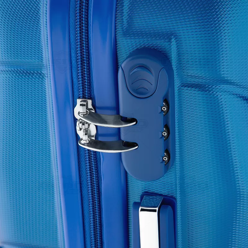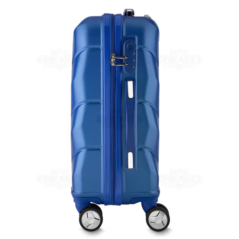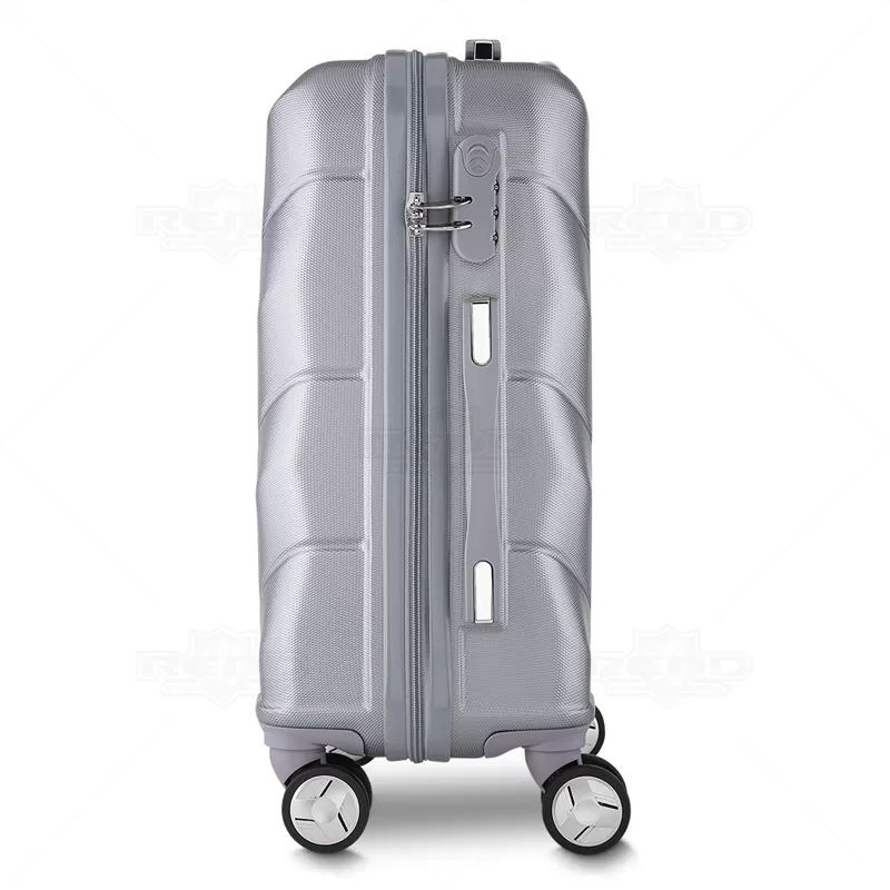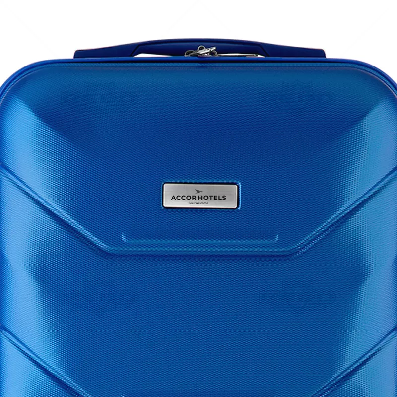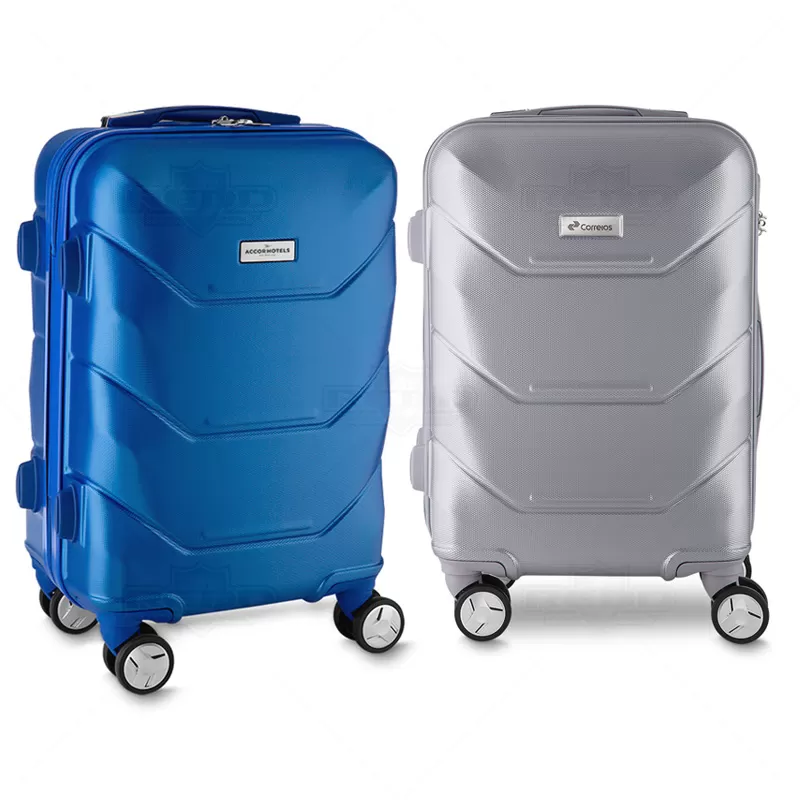 Mala de viagem personalizada em Plástico ABS, com forro em poliéster, sistema de carrinho de em aço, alça de mão, 4 rodas com rotação em 360º e sitema block de segurança por senha. Ideal para brindes promocionais e eventos corporativos.