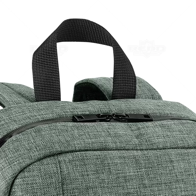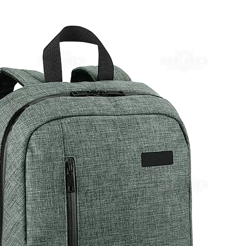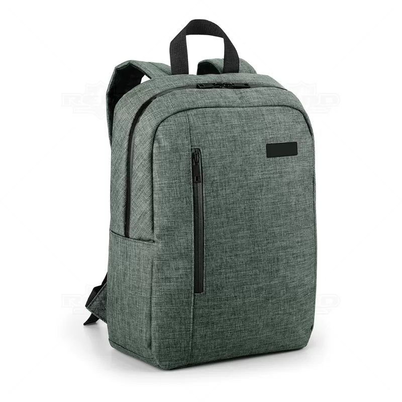 Mochila para notebook personalizada produzida em nylon 600D de alta densidade. Possui compartimento forrado com 2 divisórias almofadadas para notebook de até 14'' e tablet 9.7''. Bolso frontal e 1 bolso lateral. Parte posterior e alças almofadadas. Placa metálica removível com imã, para fácil gravação. Ideal para brindes promocionais e eventos corporativos.
