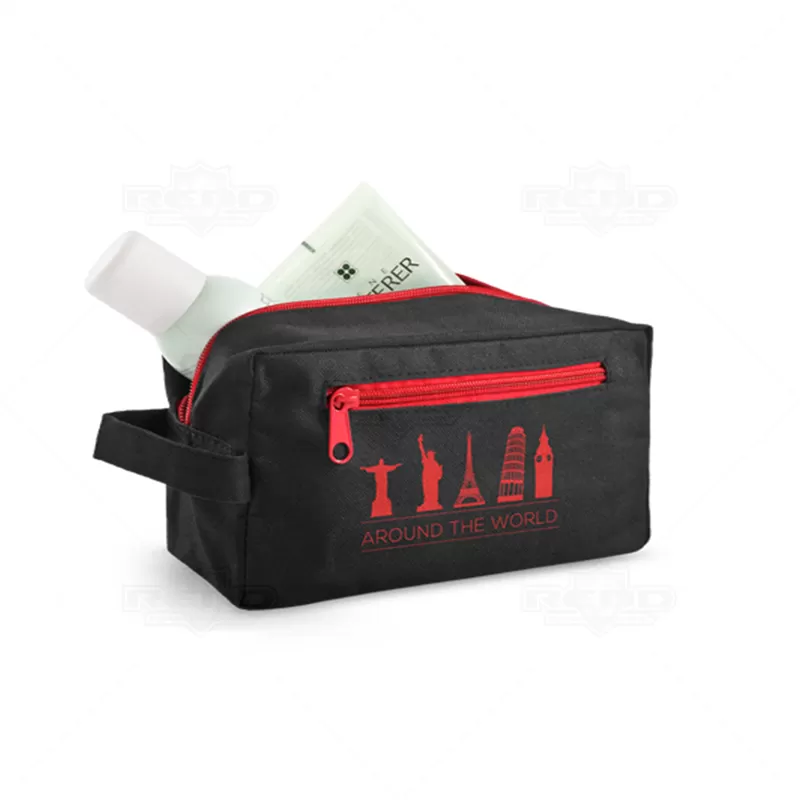 Necessaire personalizada produzida em nylon 600D, possui compartimento interno para objetos pessoais do dia dia, alça de mão lateral, zíper frontal ideal para pequenos objetos e espaço interno com fechamento por zíper. Ideal para brindes promocionais e eventos corporativos. Objetos decorativos não acompanham o produto.