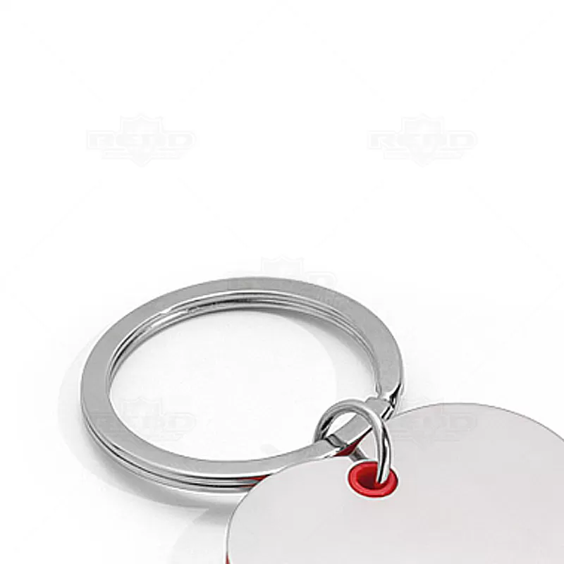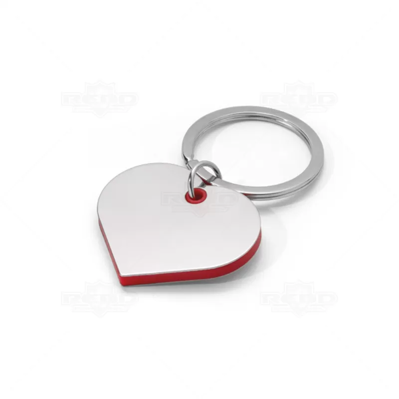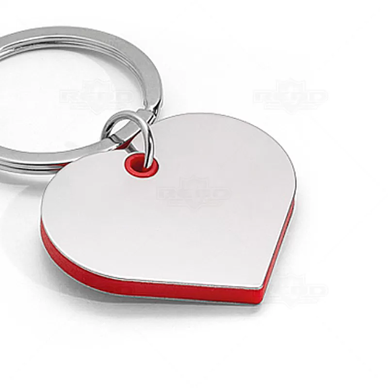 Chaveiro coração personalizado de metal com borda colorida e argola para chaves. Ideal para divulgar sua empresa em eventos corporativos, brindes personalizados e campanhas promocionais.