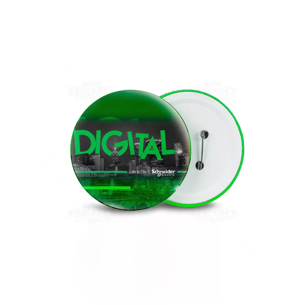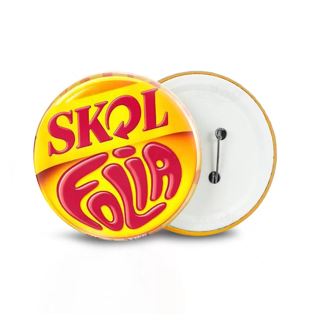 Botton de metal personalizado com impressão em papel fotográfico de alta resolução e papel filme transparente por cima da impressão proporcionando um acabamento brilhante. Possui alfinete traseiro para fixação em malas, mochilas, camisetas, bonés e uniformes. Ideal para divulgar sua empresa em eventos corporativos, brindes personalizados e campanhas promocionais.