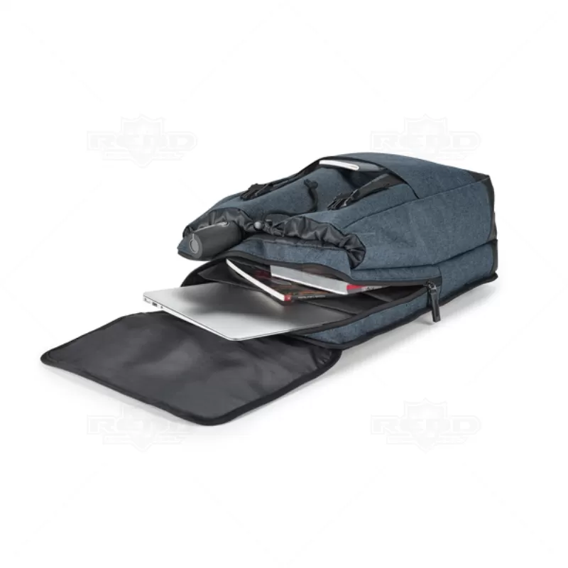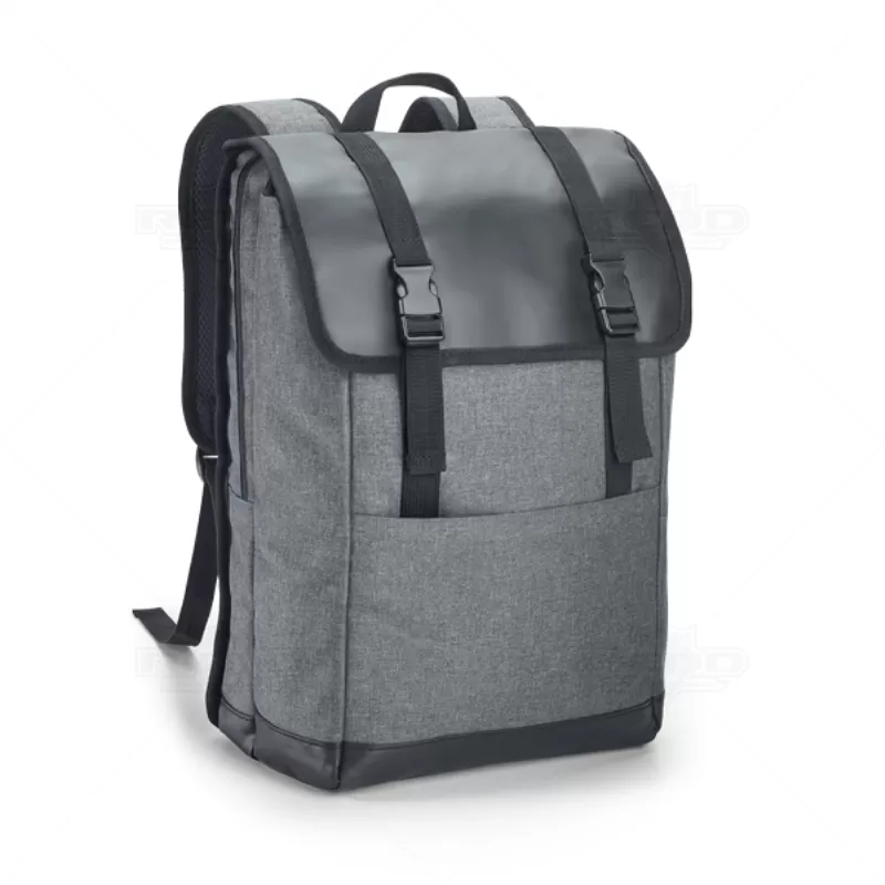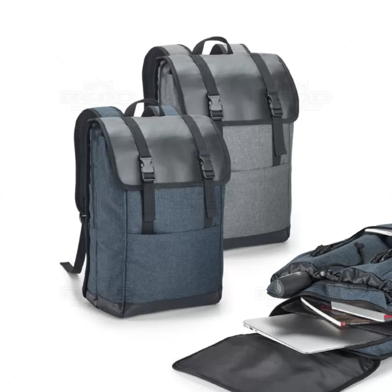 Mochila para notebook personalizada produzida em nylon 600D de alta densidade e tarpaulin. Possui 2 compartimentos, compartimento posterior forrado com diversos bolsos interiores e 2 divisórias almofadadas para notebook de até 17'' e tablet 10.5''. Compartimento frontal forrado, ideal para transporte de roupa (ou para lazer), bolso frontal, parte posterior e alças almofadadas. Ideal para brindes promocionais e eventos corporativos.