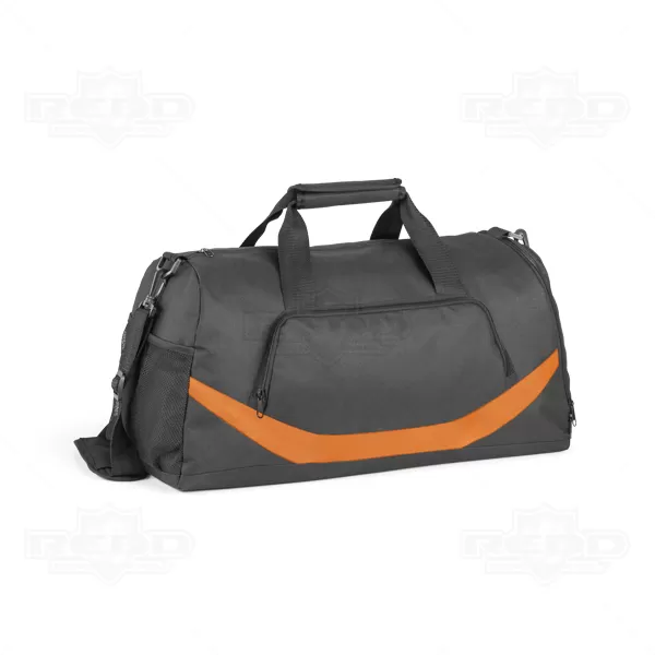 Bolsa mala de viagem esportiva personalizada produzida em poliéster 300D e 1680D, Possui bolso frontal com fechamento por zíper, alça de mão, alça de ombro almofadada ajustáveis, bolso lateral para sapatos / tênis, bolso lateral em tela para porta objetos, amplo espaço interno com fundo semi-rígido Ideal para eventos corporativos e brindes promocionais.