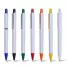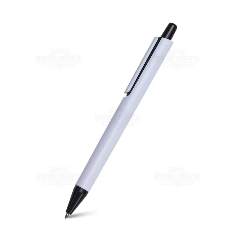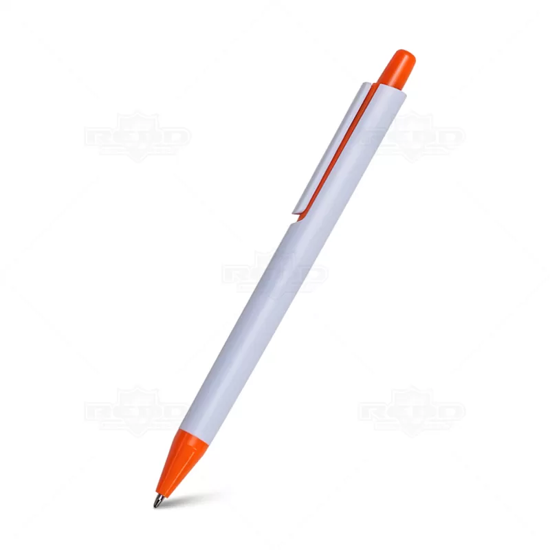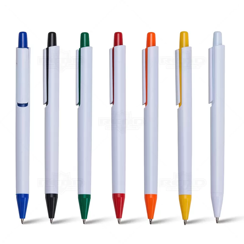 Caneta plástica personalizada com clip e ponteira colorida em um design moderno e inovador, possui esferográfica azul e acionamento da ponteira por click. Ideal para brindes promocionais e eventos corporativos.