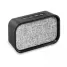 Caixa de som com transmissão sem a necessidade de fios via Bluetooth, produzido em tecido poliéster com acabamento emborrachado. Possui entrada para cartão de memória e pen drive, bateria recarregável, ligação stéreo, potência 3w, botões de atender chamadas telefônicas, controle de volume, e rádio FM. Incluso manual e cabo USB para carregamento. Ideal para brindes promocionais e eventos corporativos.