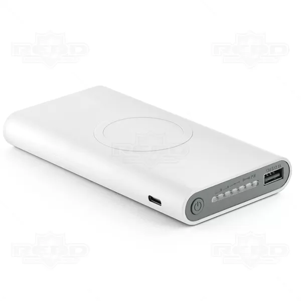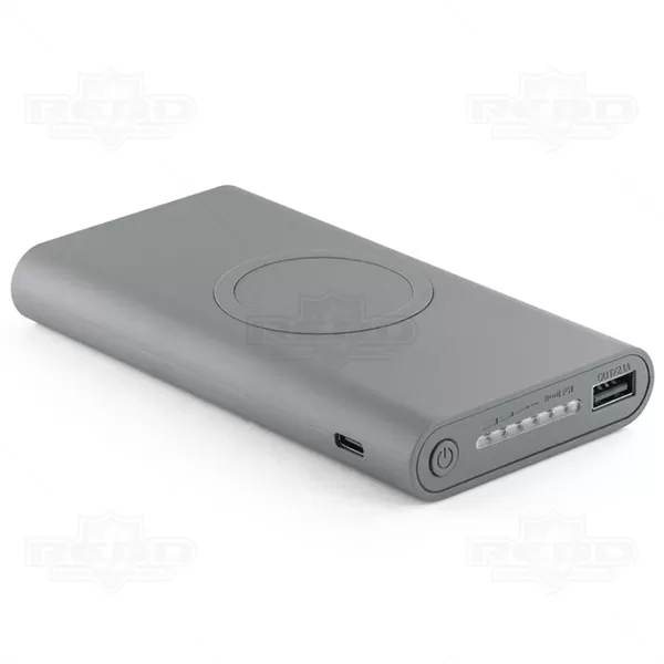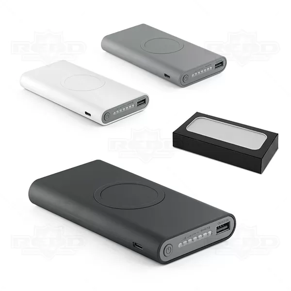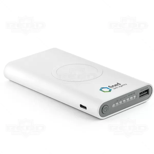 Carregador portátil personalizado com capacidade de 10000maH e acabamento emborrachado. Possui carregamento por indução somente com celulares habilidade e compatíveis com esta função, potência de carregamento de 5W / entrada /saída 5V/2.1A, indicador de carga e portas USb, USB micro e USB tipo C. Incluso cabo USB micro USB para carregar a bateria. Ideal para divulgar sua empresa em eventos corporativos, brindes personalizados e campanhas promocionais. Smartphone não acompanha o produto.