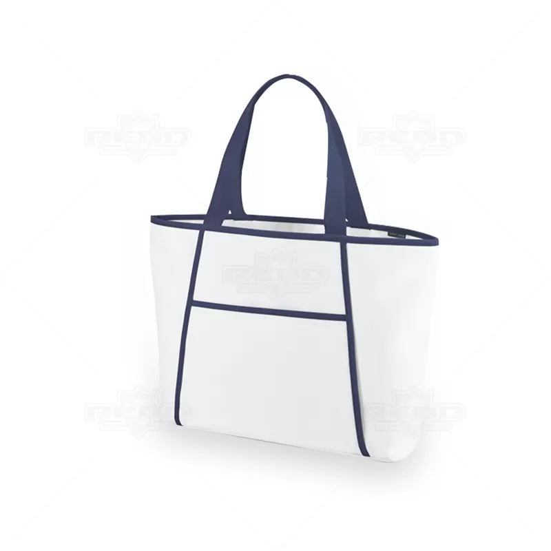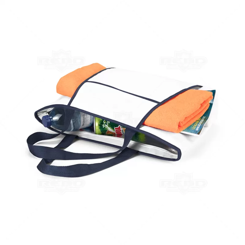 Sacola Térmica personalizada com capacidade até 9 litros, produzida em poliéster 600D e fecho de zíper. Possui compartimento externo aberta forrado com frontal e alças em webbing de 55 cm. Itens decorativos não incluso no produto. Ideal para brindes promocionais e eventos corporativos.