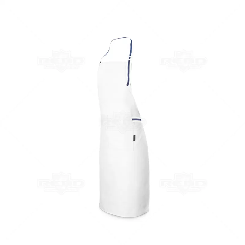 Avental personalizado produzido em em algodão e poliéster 150 g/m² com detalhes em metal. Com 2 bolsos multifuncionais e uma tira lateral (para suporte de um pano de cozinha, conforme ilustra a imagem, o pano não acompanha). Tira do pescoço facilmente ajustável e tiras em tecido para amarrar ajustando ao seu corpo. Ideal para brindes promocionais e eventos corporativos com foco em gastronomia.