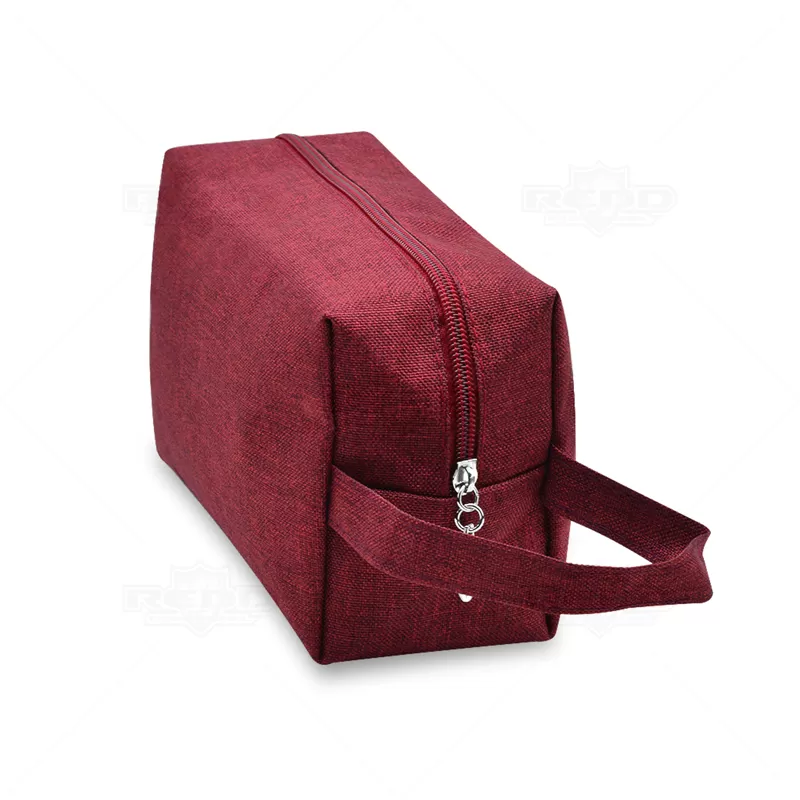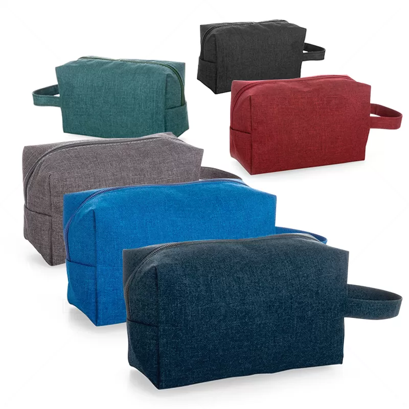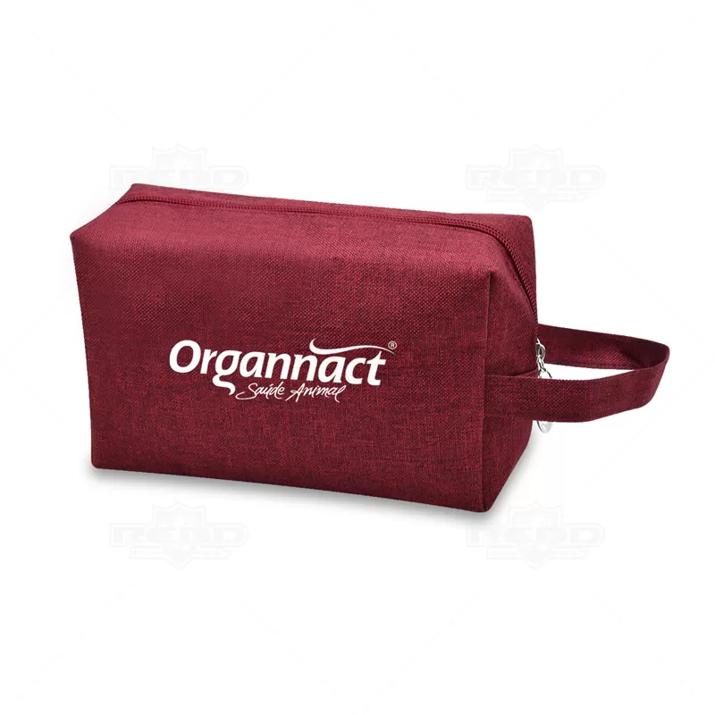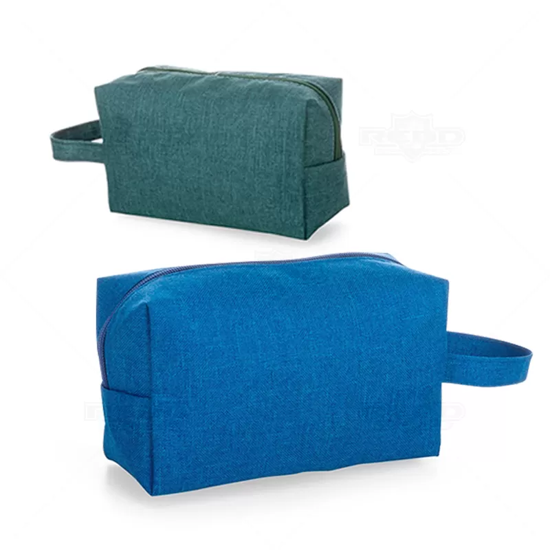 Necessaire personalizada produzida em Nylon. Possui espaço interno forrado em poliéster, alça lateral de mão e fechamento em zíper. Ideal para brindes personalizados e eventos corporativos.