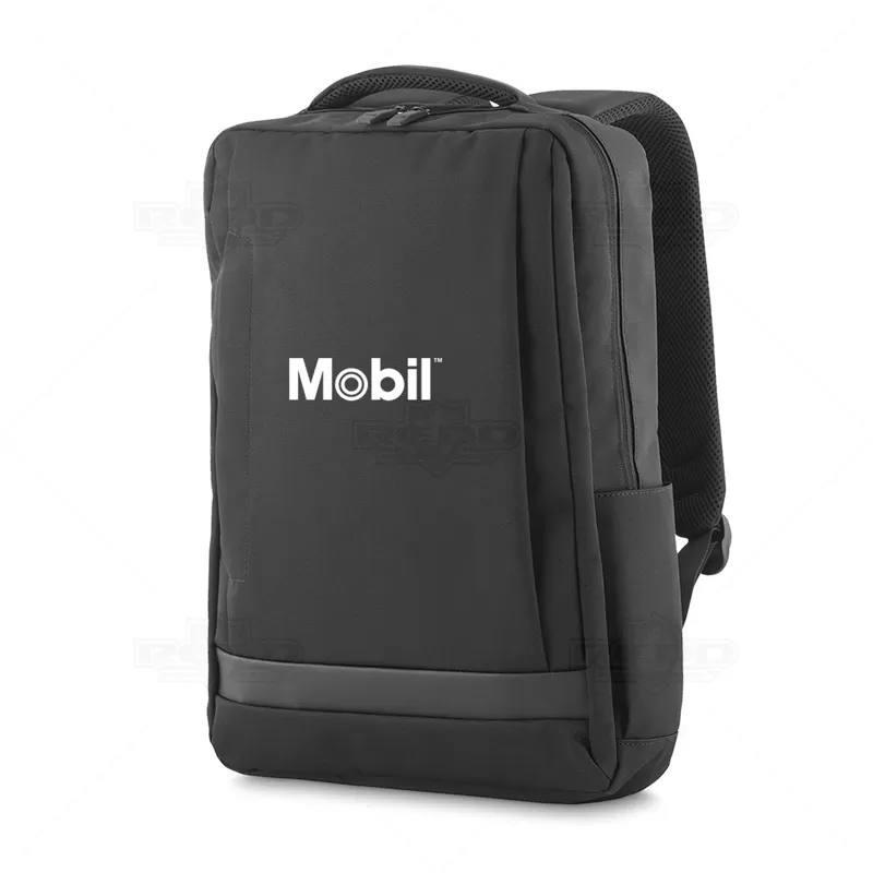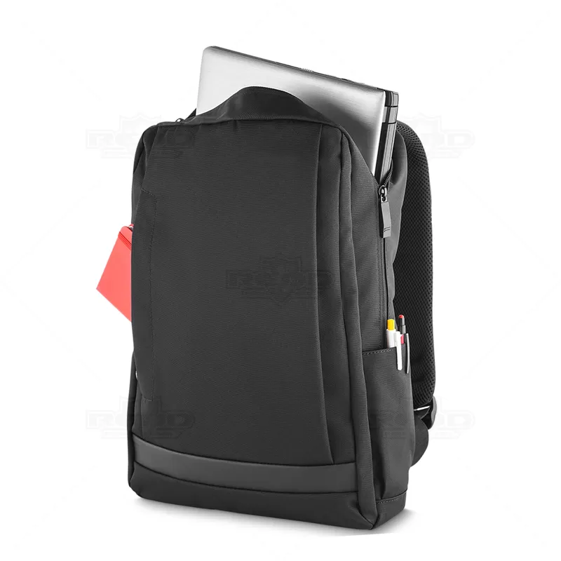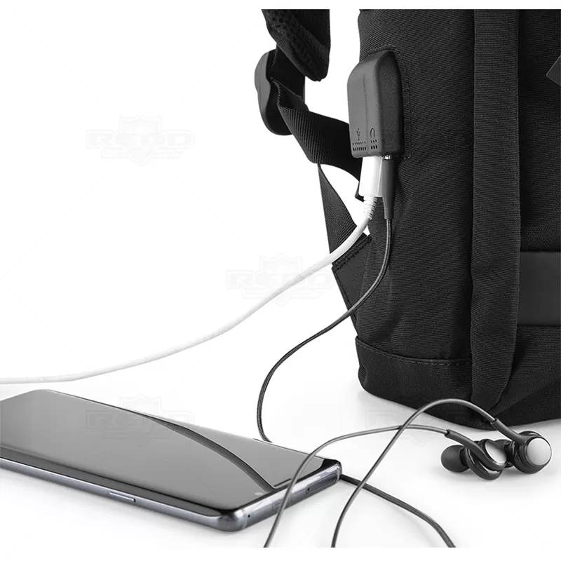Mochila para notebook personalizada produzido em poliéster. Possui bolso central com compartimento para notebook de até 15 polegadas, 3 bolsos internos para tablet, celular e carteira, bolso frontal com aberturar lateral, 1 mini bolso externo na lateral, alça de ombro ajustáveis, alça de mão, cabo USB e entrada P2 para fone de ouvido. Objetos decorativos não acompanha o produto. Ideal para brindes personalizado e eventos corporativos.