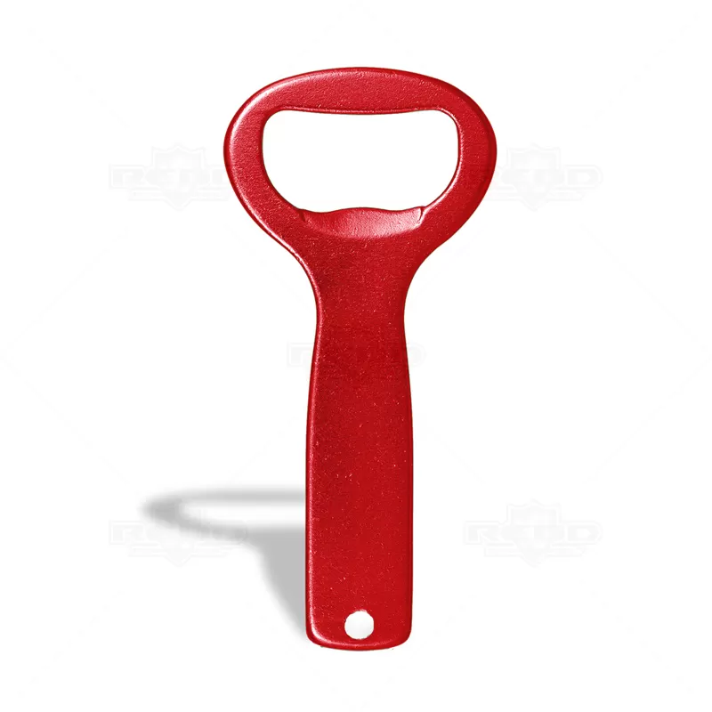 Abridor de garrafas personalizado produzido em alumínio, possui detalhe em metal na área do abridor e superfície furada para colocar argola ou chaveiro. Ideal para divulgar sua empresa em eventos corporativos, brindes personalizados e campanhas promocionais