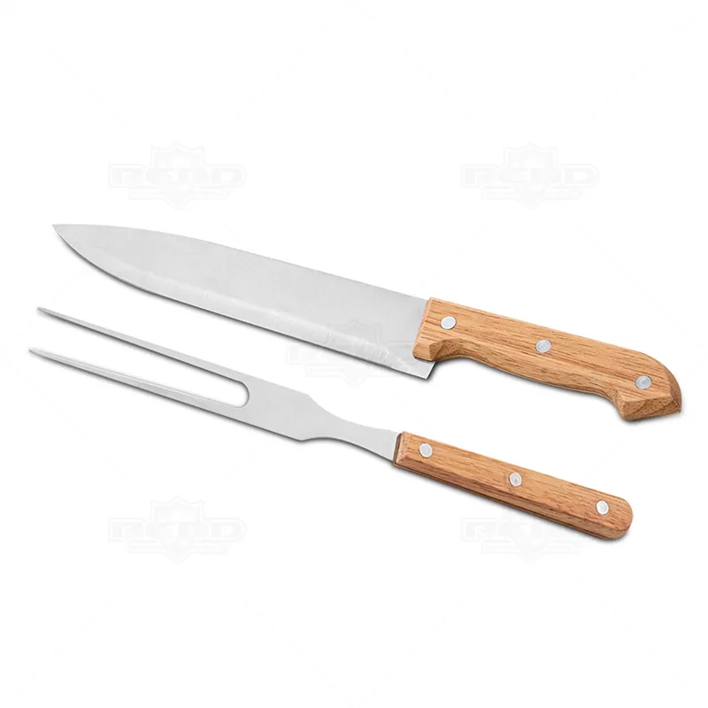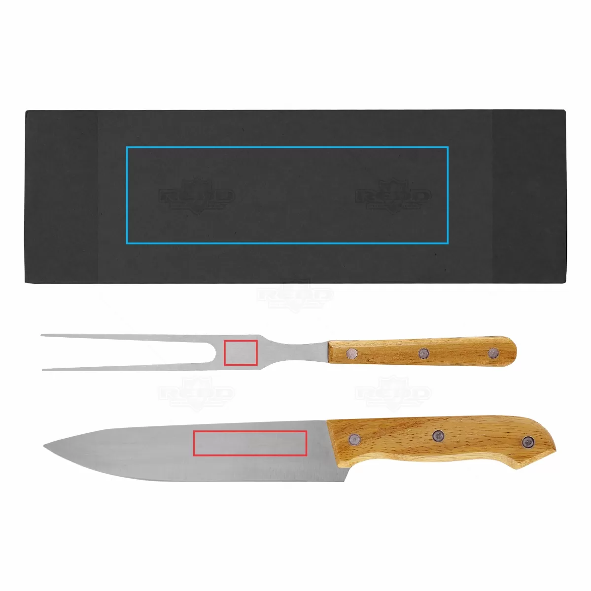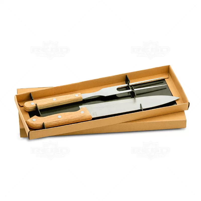 Kit churrasco personalizado com faca e garfo de inox ambos com cabo de bambu. Acompanha caixa de papel Kraft. Ideal para divulgar sua empresa em eventos corporativos, brindes personalizados e campanhas promocionais.