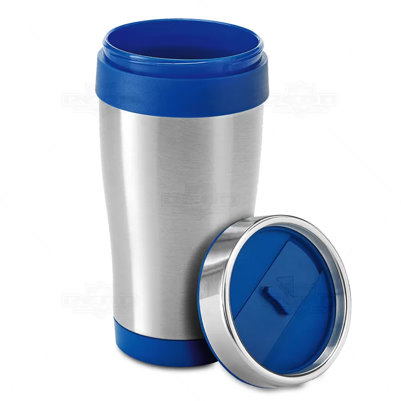 Copo térmico personalizado produzido em metal e acabamento em plástico PP, com capacidade de 420ml. Possui parede dupla para conservar a bebida por mais tempo e tampa com sistema anti-derramamento. Ideal para divulgar sua empresa em eventos corporativos, brindes personalizados e campanhas promocionais.