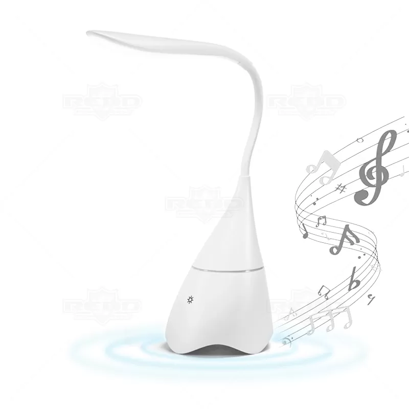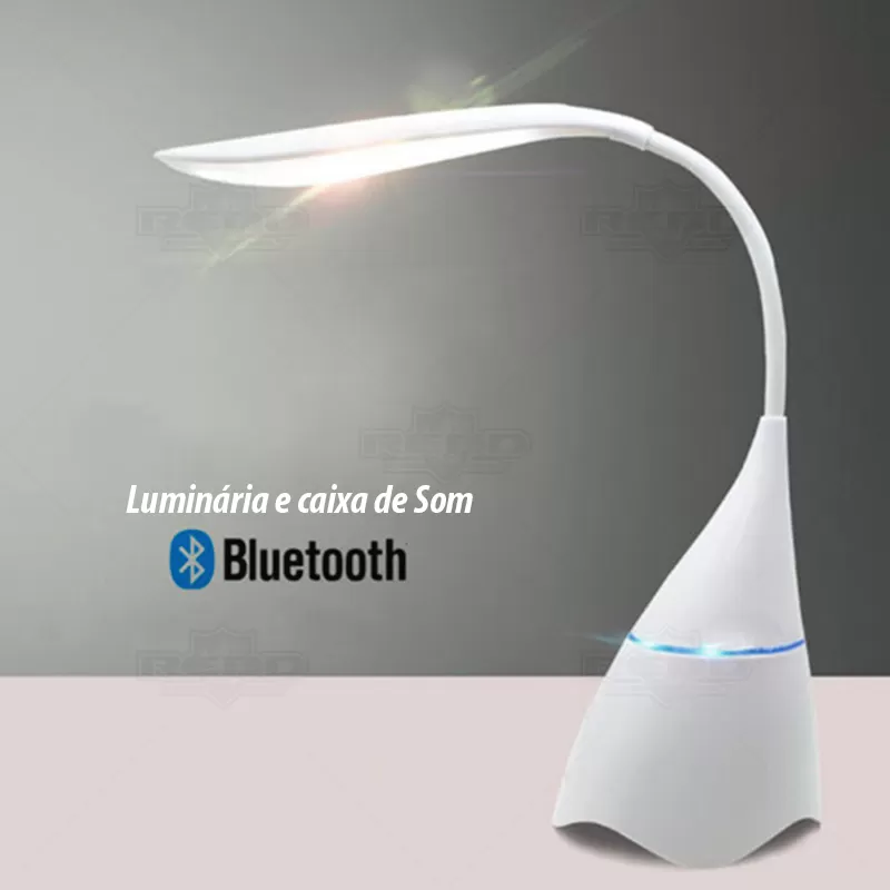 Luminária de mesa personalizada produzida em ABS com haste emborrachada. Possui caixa de som com conexão sem fio via Bluetooth, autonomia até 6hrs, ligação estéreo, potência de 5W e conexão ao dispositivo móvel. Luminária com 18 LEDs de alto brilho e botão touch. Incluso cabo USB para carregar e ainda uma embalagem presenteável. Ideal para divulgar sua empresa em eventos corporativos, brindes personalizados e campanhas promocionais.