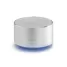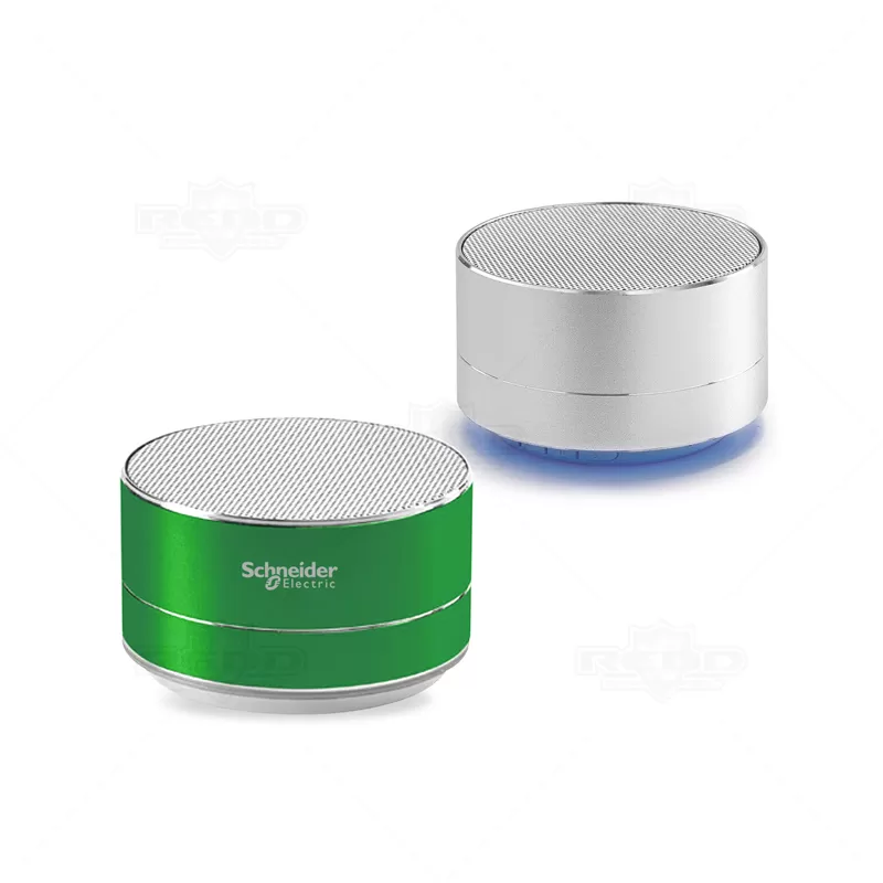 Caixa de som personalizada, com transmissão sem fio via Bluetooth , produzida em alumínio, possui entrada para cartão de memória, potência 3W, função para atender chamadas, tempo de uso até 5 horas, rádio FM e controle de volume. Incluso cabo USB para carregamento. Ideal para brindes promocionais e eventos corporativos.